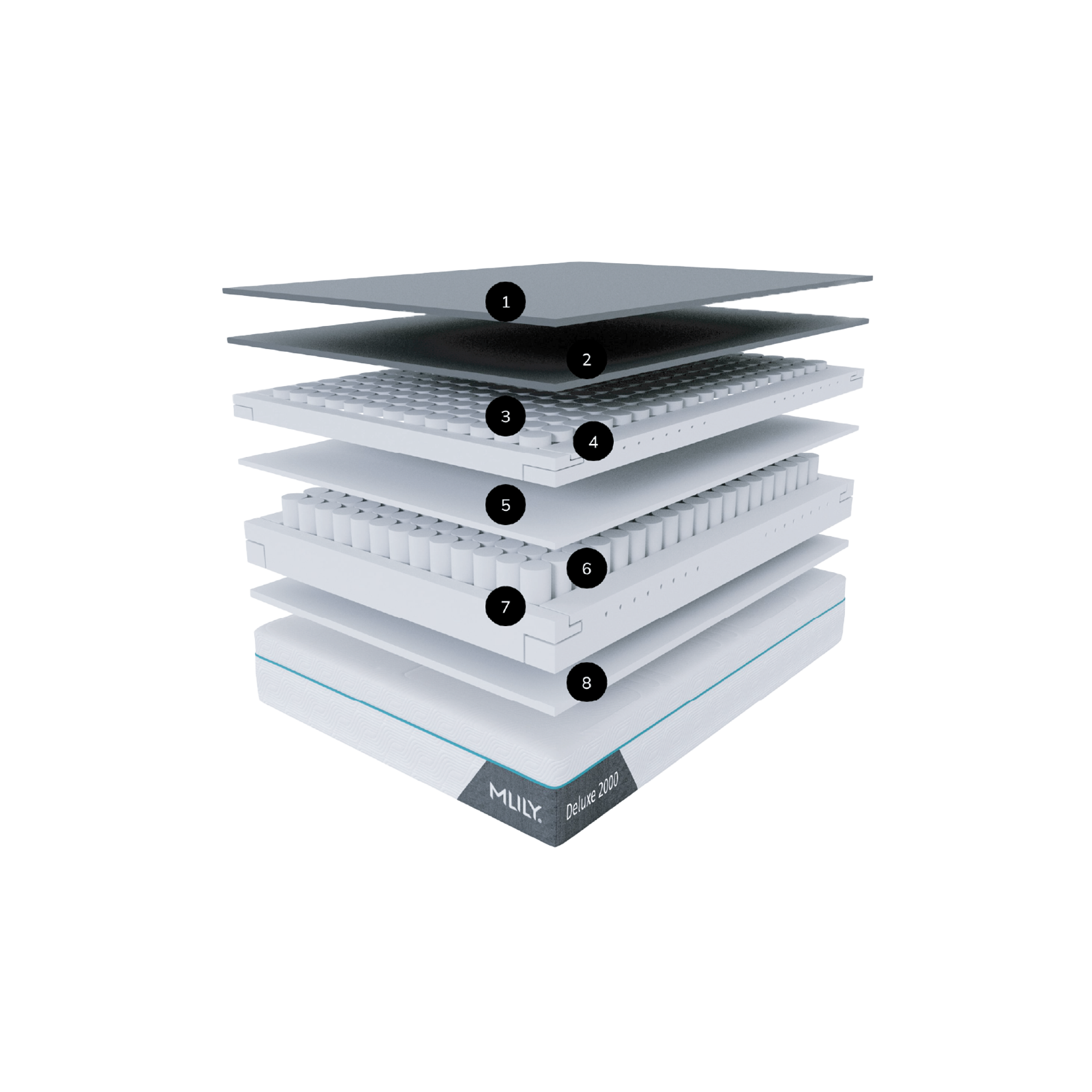 3. Hybrid Mini Springs. Our 2000 Deluxe+ Mini Springs system gives exceptional levels of support and comfort whilst increasing airflow to help regulate temperature. This helps your body to relax and regenerate during the night.