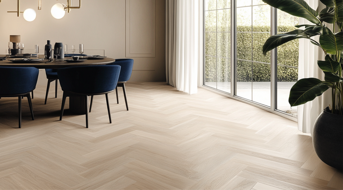 Explore the 12mm Herringbone Sand Oak AC5 Features