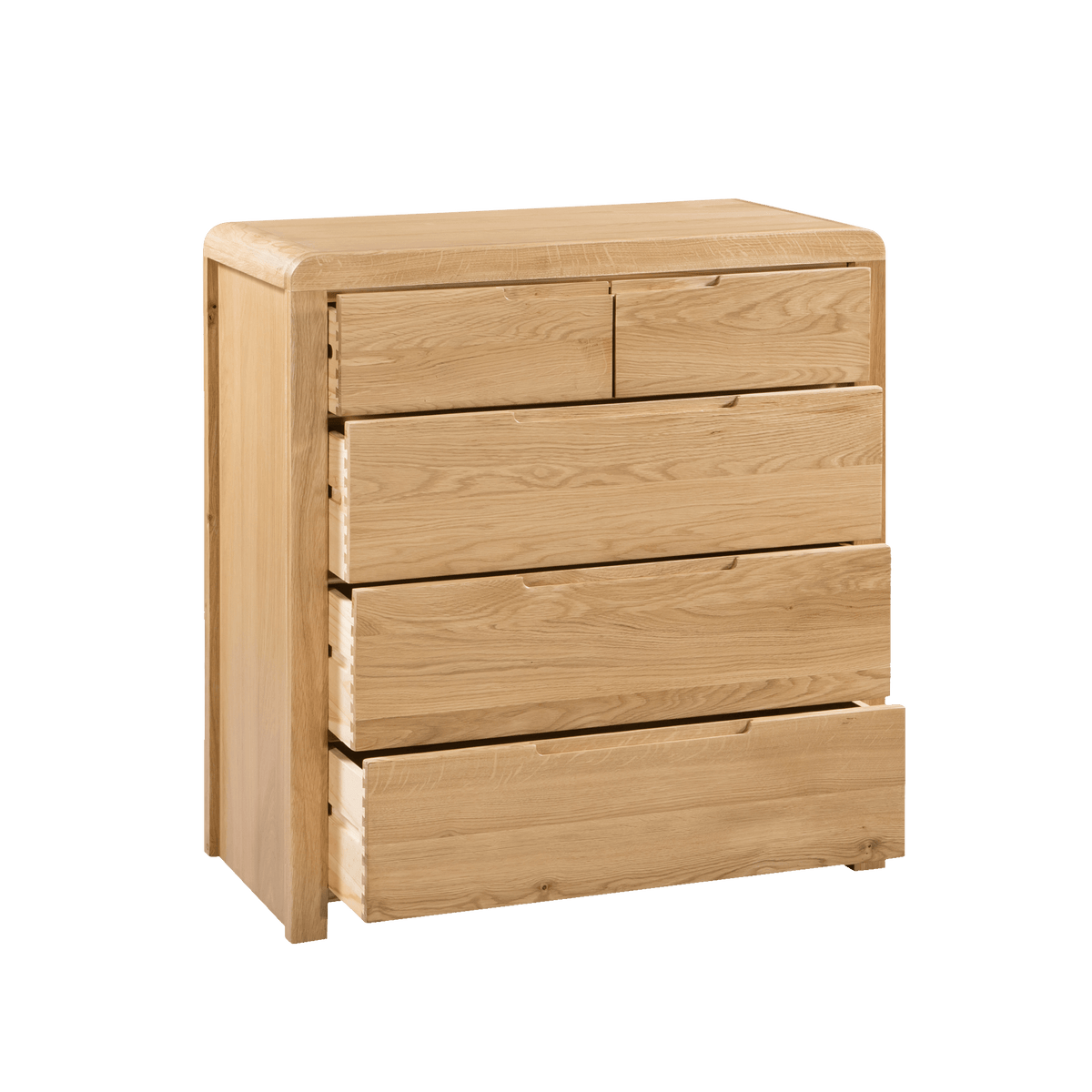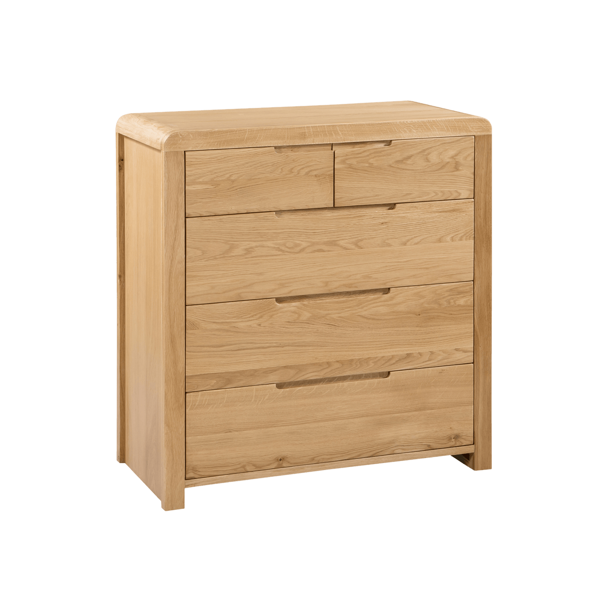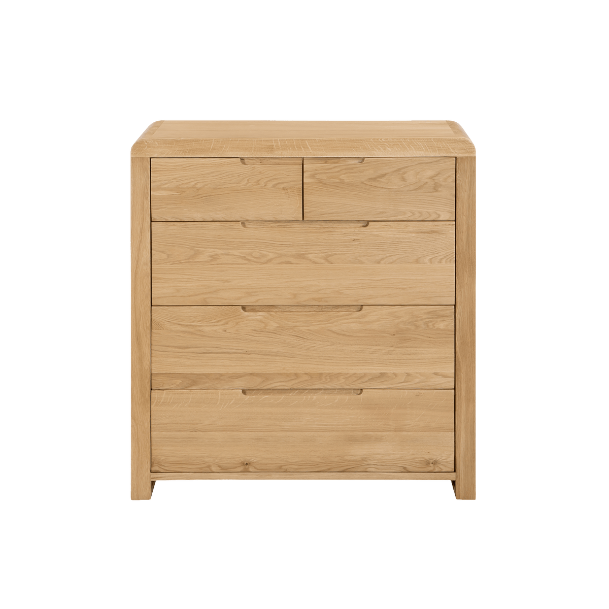 Introducing the Arizona 3+2 Drawer Chest Ass, a pinnacle of sophistication and craftsmanship. Crafted from solid white oak and oak veneers, the Arizona combines clean lines with a gentle edging, adding a stunning touch to any bedroom. This Arizona chest features three large and two small drawers, perfect for extra storage.