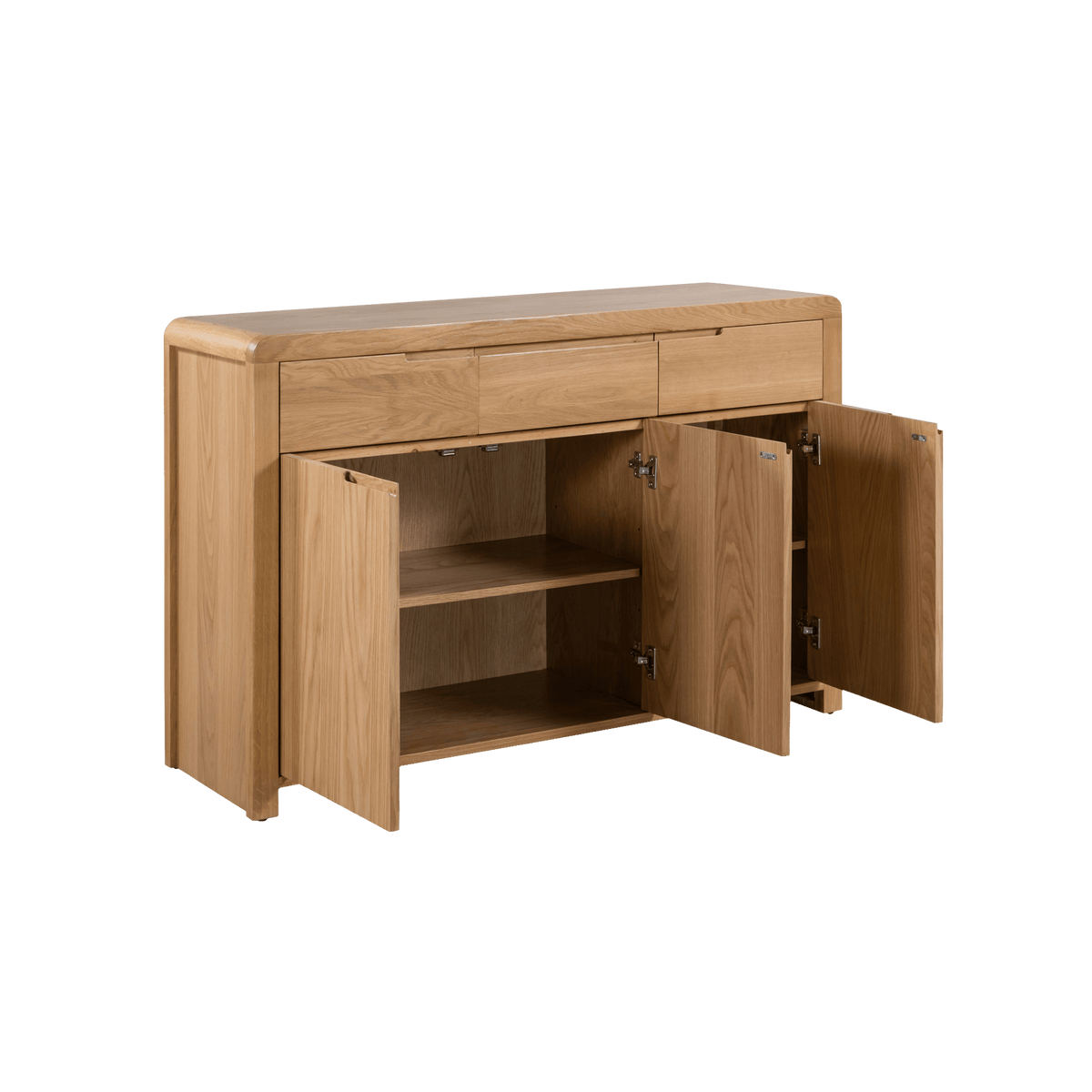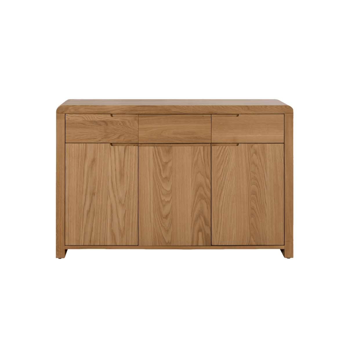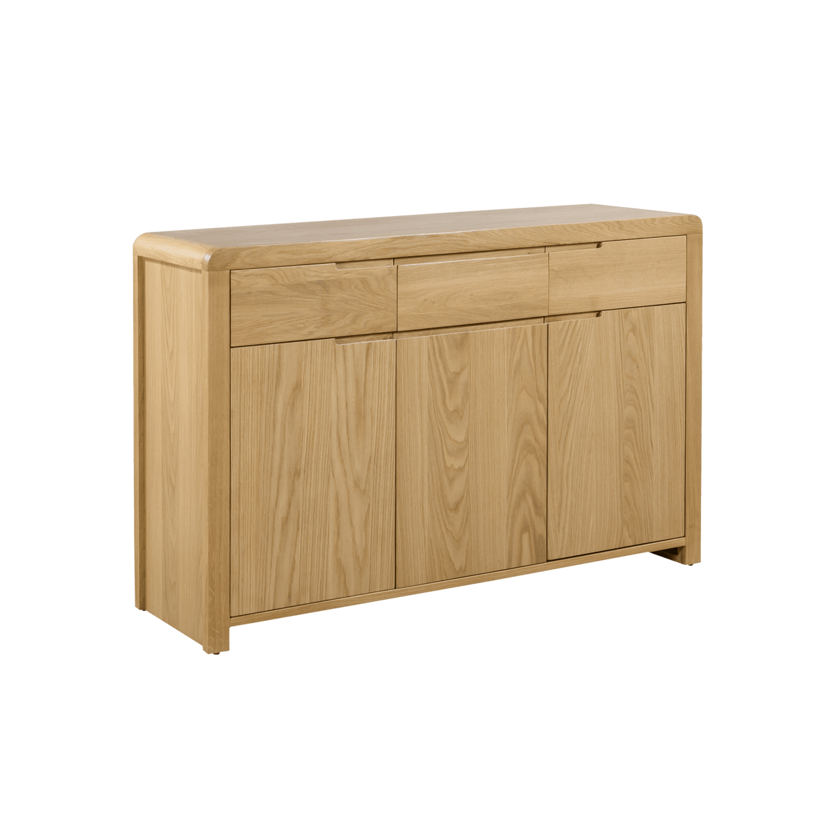 Introducing the Arizona Oak Sideboard, a pinnacle of sophistication and craftsmanship. Crafted from solid oak and oak veneers, the Arizona combines clean lines with a gentle edging, adding a modern, retro feel to any home. The Arizona Sideboard provides great storage with three drawers and three doors, perfect for the kitchen, dining, or living room.