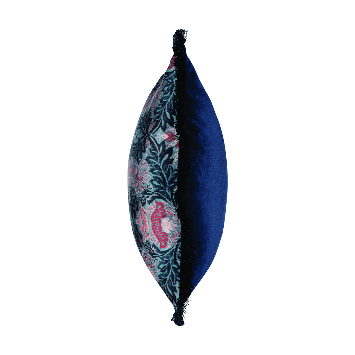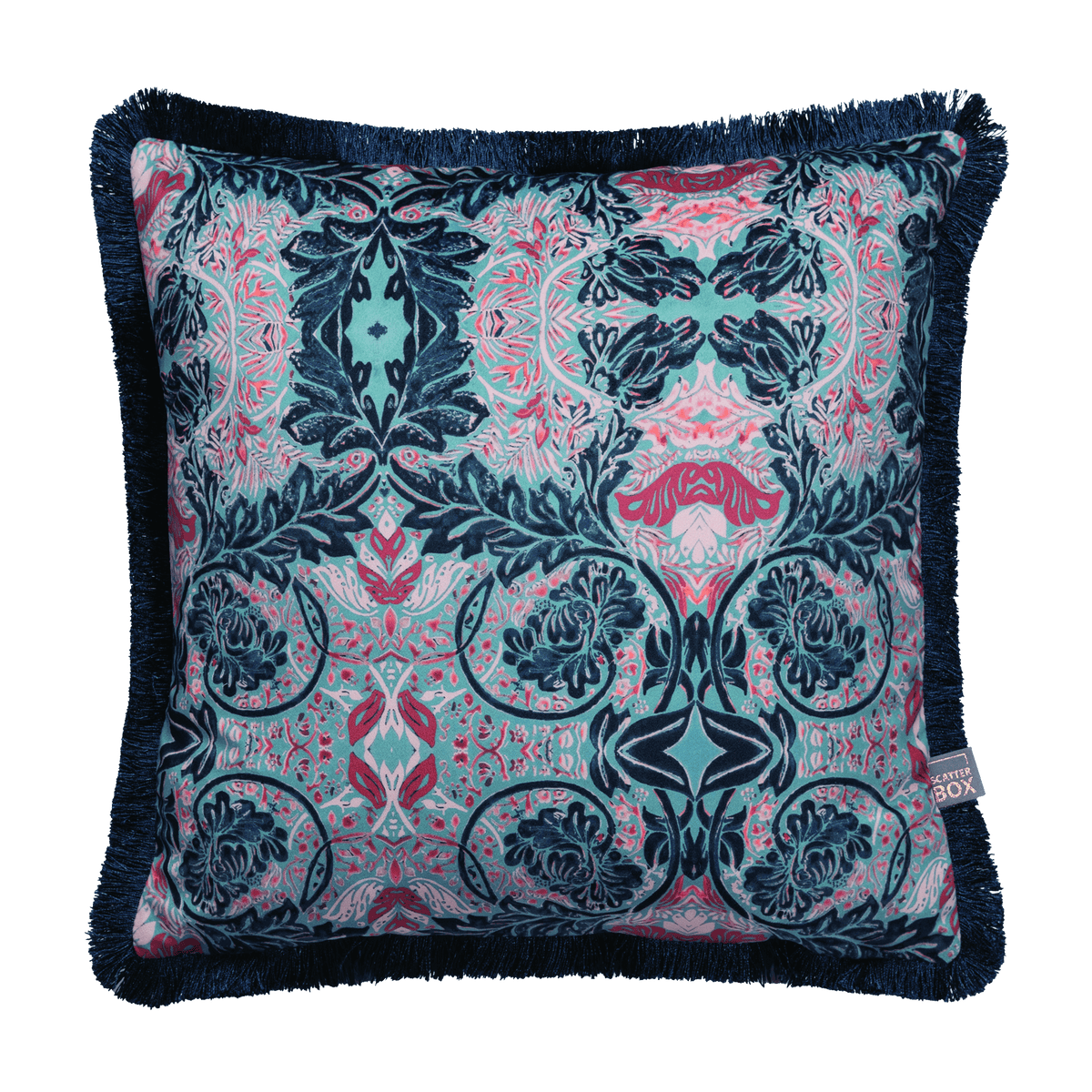 Frame your favourite chair with the Athena Blue/Marsala cushion. Digitally printed on soft velvet feel fabric with soft touch of fringed edges for a fun finish. Team up with more items from this collection to complete the look.