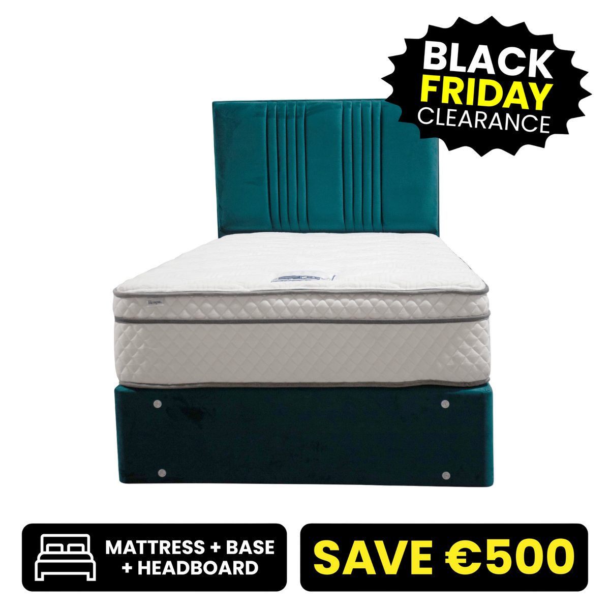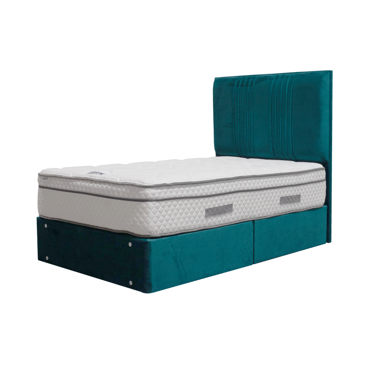 Set Includes: Plush Atlantic Turquoise Base, 55" Full Height Headboard, Respa Pocket Sprung Mattress