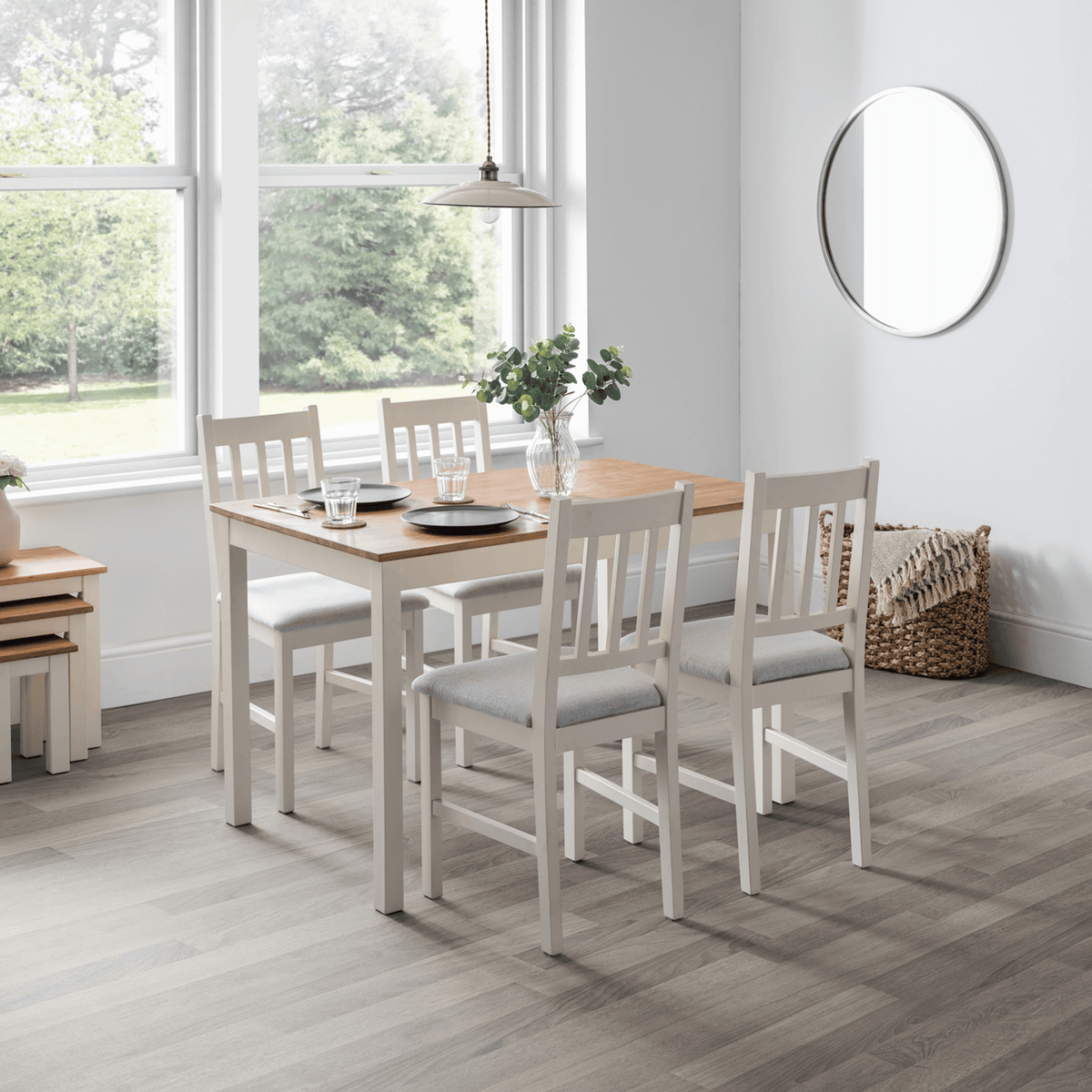 Elevate your dining experience with our classic Austin dining chair, available in two elegant finishes: Oak and Ivory & Oak. Featuring a sturdy wooden frame and a comfortable cushioned seat, this chair seamlessly blends style and durability. Perfect for any dining room setting, its timeless design ensures it complements both contemporary and traditional decor.