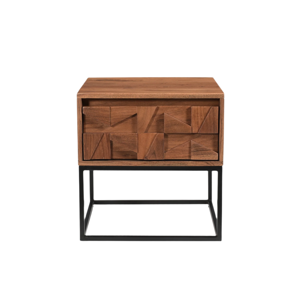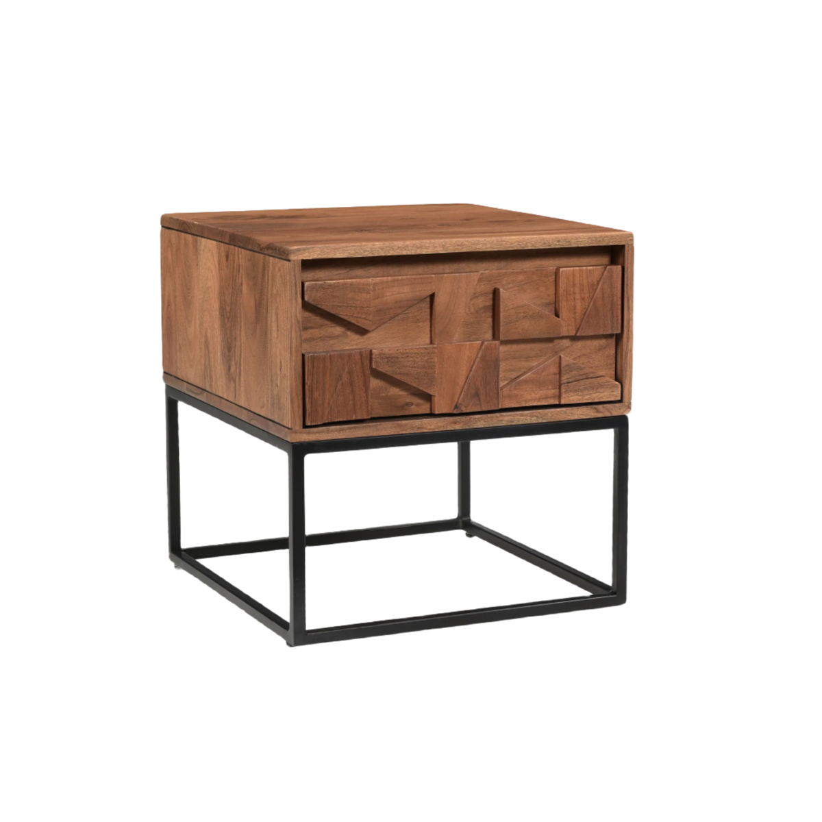The Axis End Table combines the natural warmth of acacia wood with the durability of metal, creating a stylish and functional piece for any living space. Featuring a single drawer, it offers convenient storage for essentials while maintaining a sleek, modern profile. Its sturdy construction ensures long-lasting use, making it an ideal choice for both contemporary and rustic interiors.