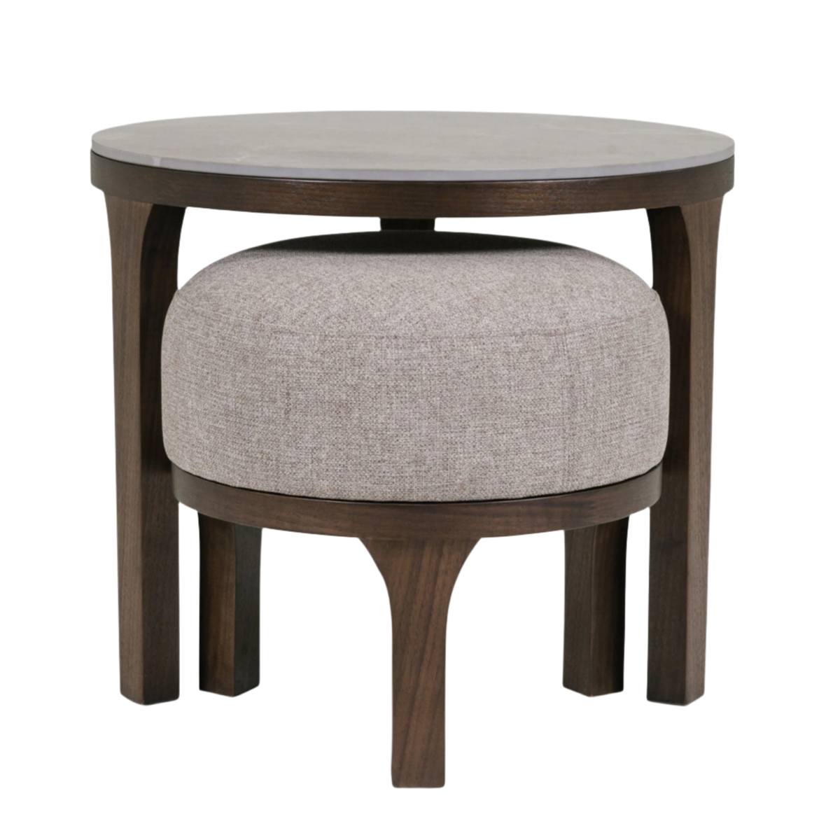 The Axton Drinks Table in Latte combines elegance with practicality. Crafted from bird wood with a dark brown walnut veneer, it exudes natural charm. Its sintered stone tabletop is heat and cold-resistant, waterproof, scratch-resistant, and stain-proof, making it easy to maintain and clean.