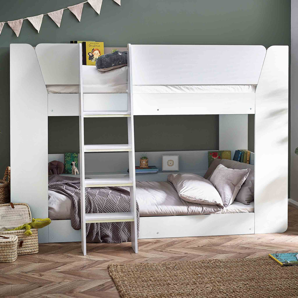 The Bandini Bunk Bed is a stylish and practical double bunk bed, designed to enhance any child’s bedroom with its modern aesthetic and functional features.