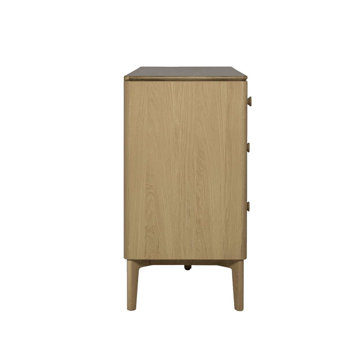 Each drawer is equipped with smooth metal runners for easy opening and closing, enhancing functionality without compromising on aesthetics. The Barnet chest provides ample storage with seven spacious drawers, making it perfect for organising clothes, linens, or other essentials. Its natural wood finish brings warmth and elegance to your space, blending seamlessly with various decor styles.