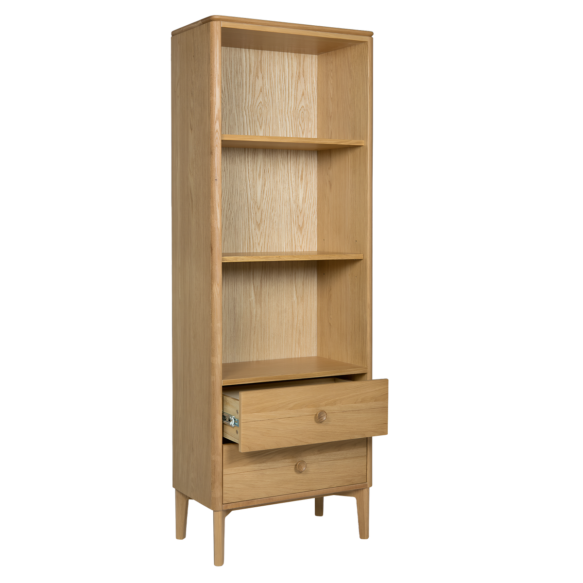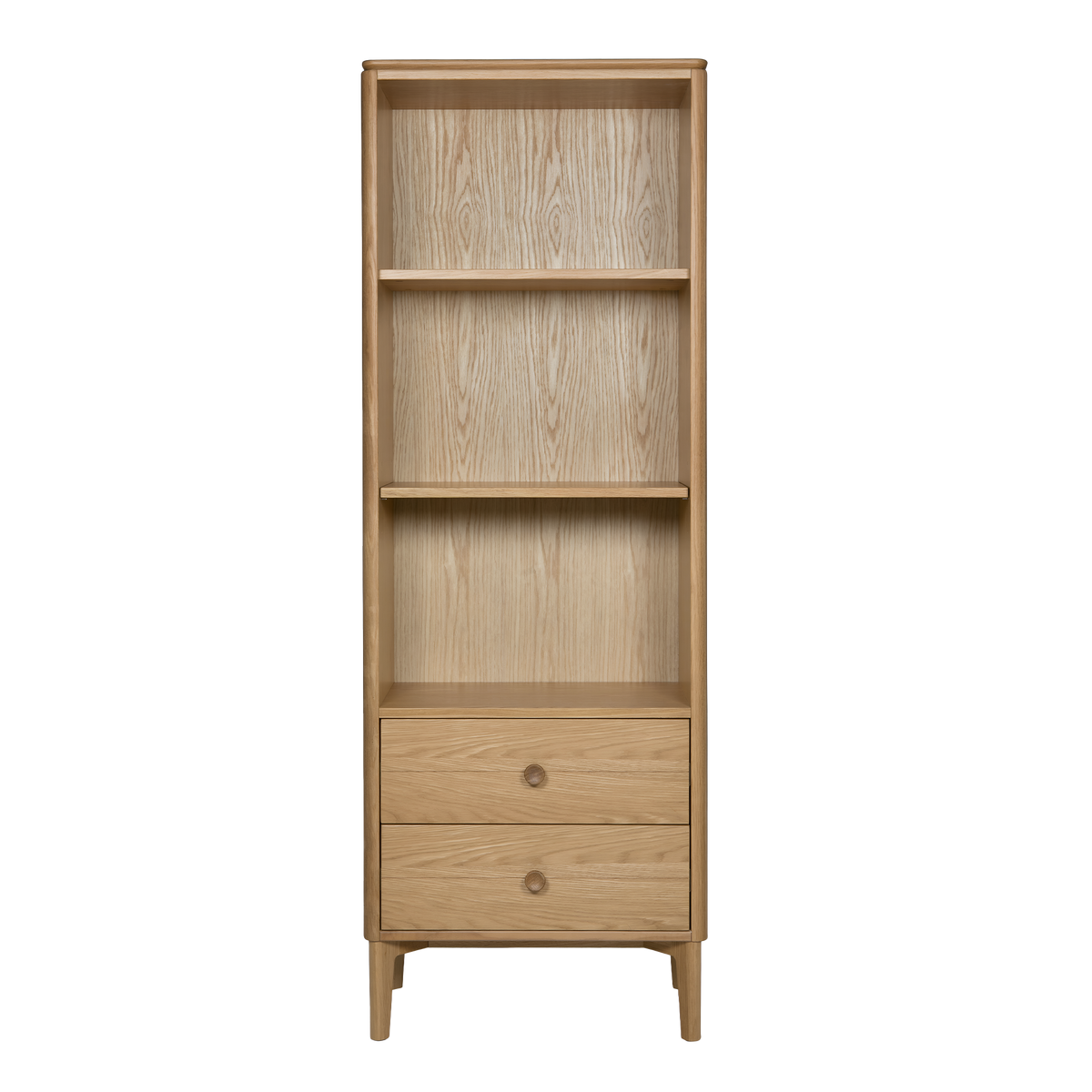 The Barnet open storage unit, made with oak and oak veneer, offers both beauty and durability. With three shelves and two drawers with soft close function, it provides ample space for storing items while keeping everything neat and organized. The adjustable centre shelf allows you to easily customize the storage space to your needs. The top shelf has a height of 304mm, making it suitable for anything from displaying decorative items to storing entertainment devices.