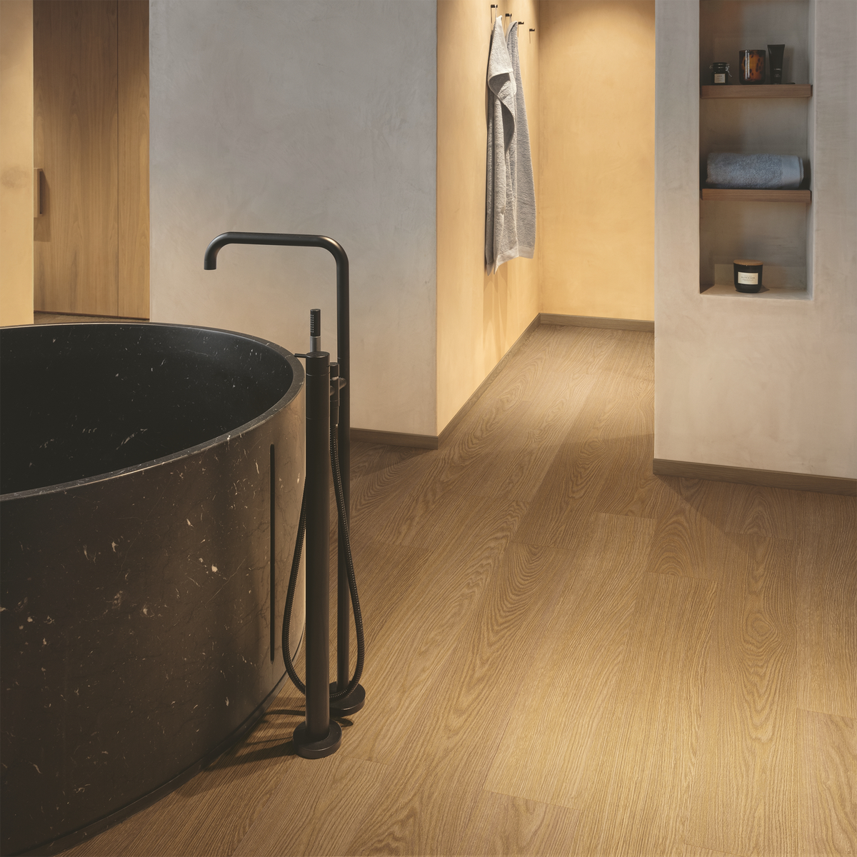 AVSPT40279 - Crafted with a keen eye for detail, the Blos Flooring Collection offers a range of captivating designs that cater to diverse tastes and interior themes. Whether you prefer the timeless charm of oak or the sleek elegance of walnut, our collection ensures there's a perfect match for every room. Experience hassle-free installation with our advanced watertight click-system, engineered to deliver seamless results without compromising on quality. This innovative technology not only simplifies the installation process but also enhances the longevity of your flooring, making it ideal for high-traffic areas in your home.