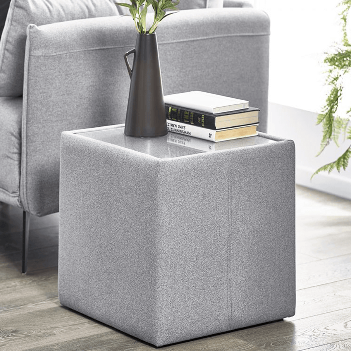 Illuminate your home with this contemporary Bonsai lamp table, featuring a sleek glass top and a sturdy, upholstered grey base. Its compact and narrow design makes it an ideal choice for smaller spaces, while providing a stable and stylish platform for your favorite lamp. Crafted with durable materials, this table seamlessly blends functionality and aesthetic appeal.