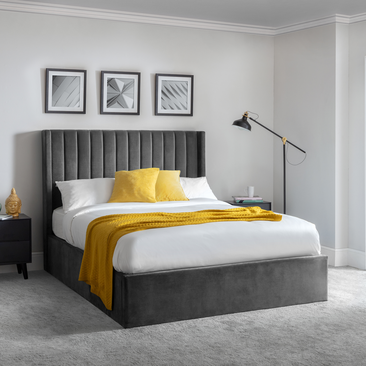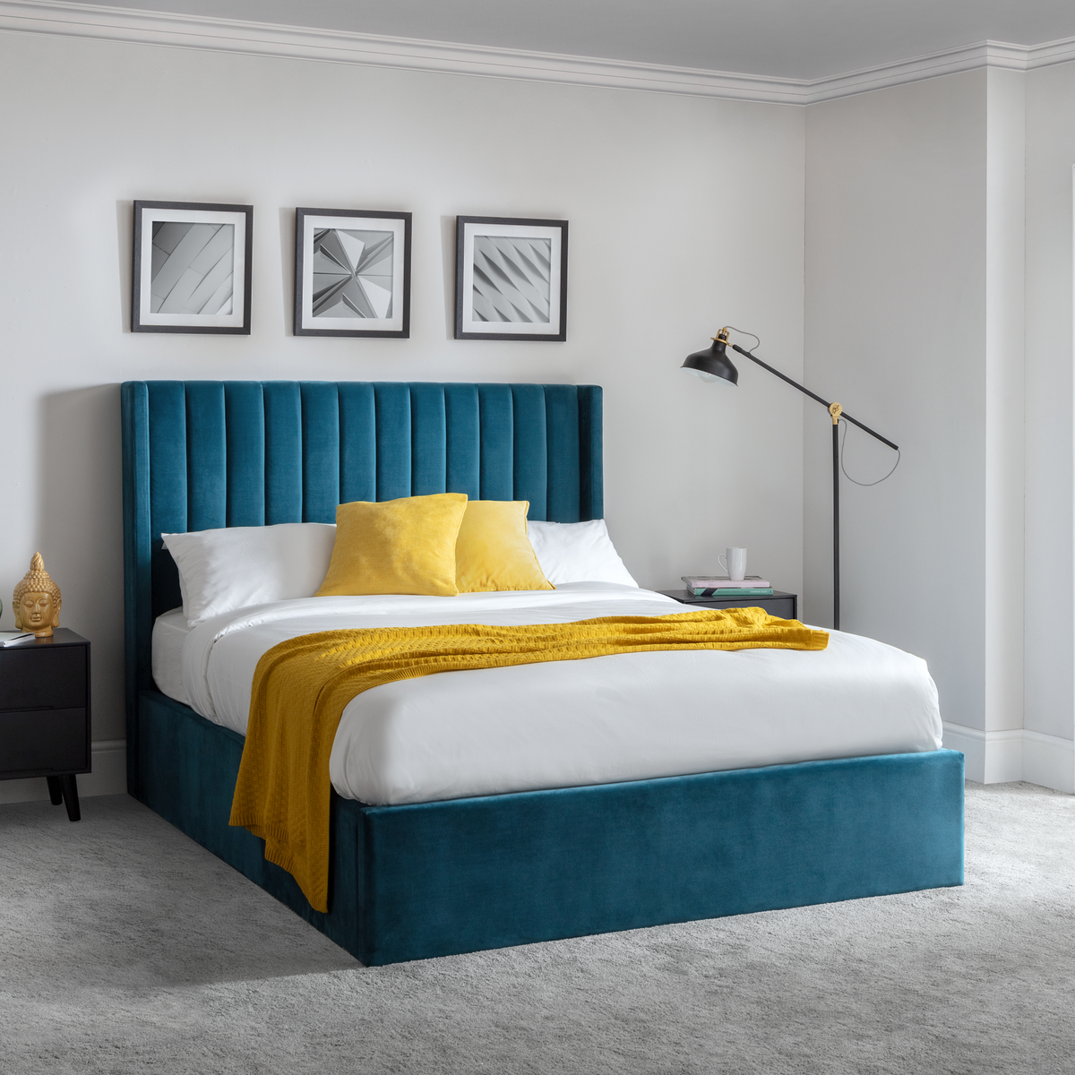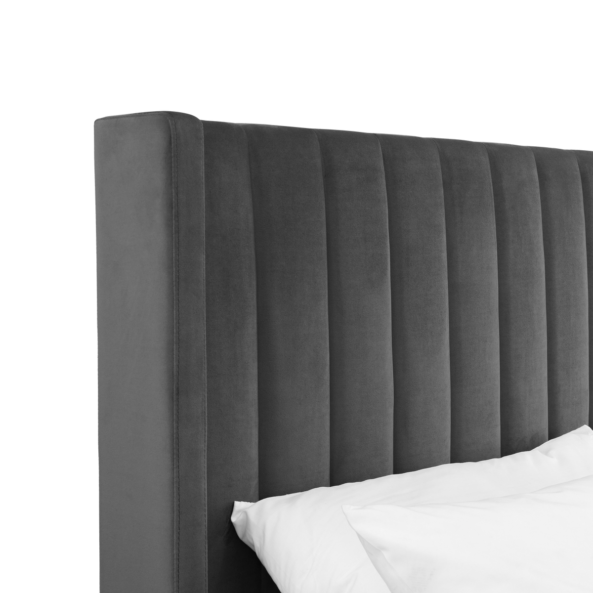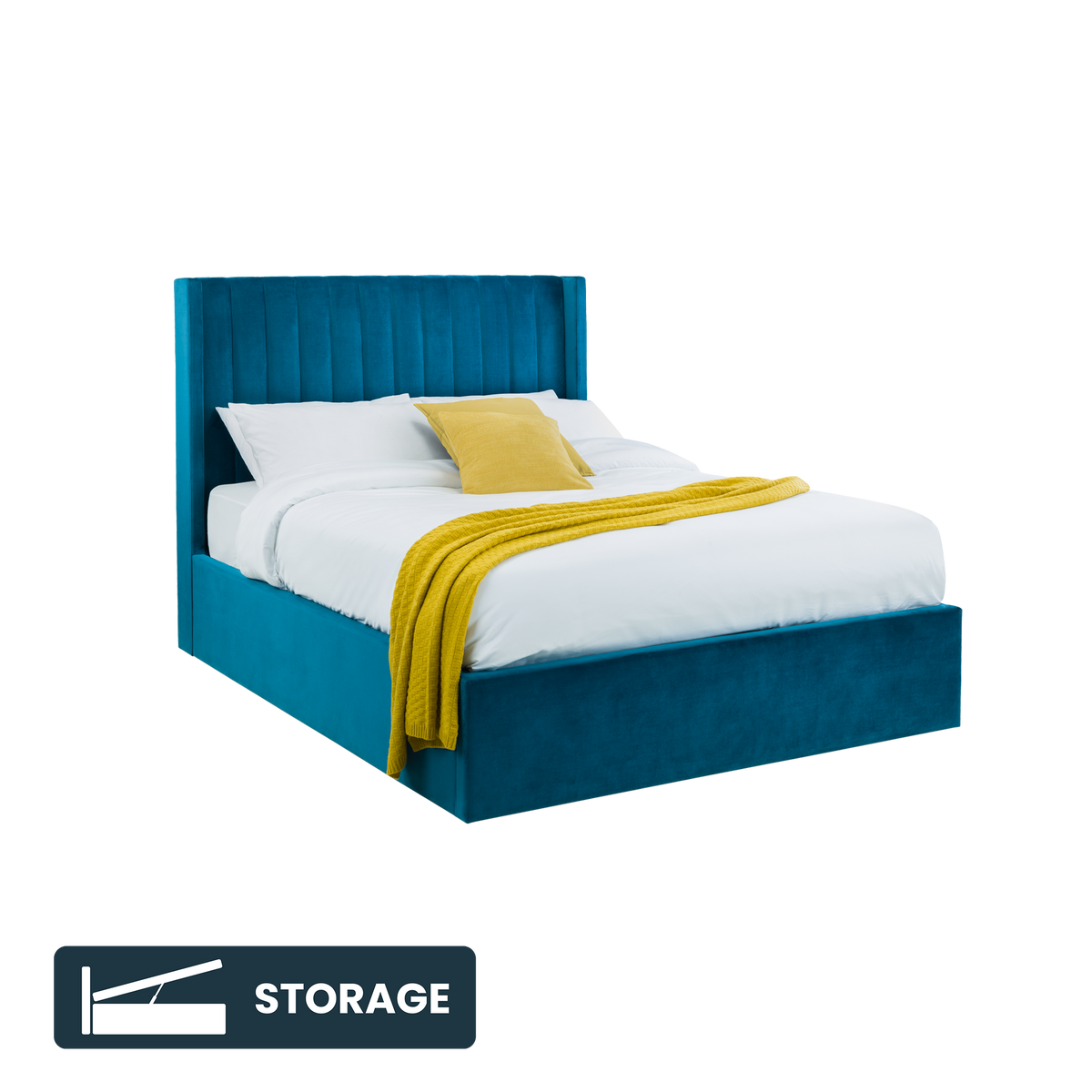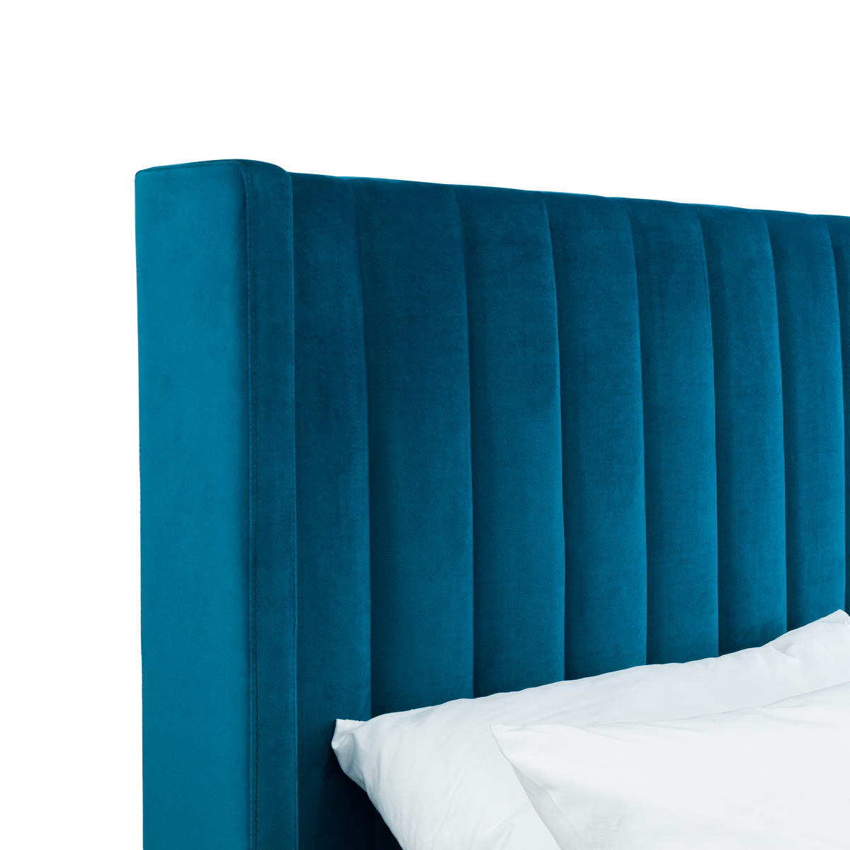 Its plush, velvet finish offers a luxurious feel, while the scalloped headboard design adds a touch of elegance and class. Available in two stunning colours—an elegant grey that exudes timeless sophistication or a bold teal for a pop of colour and style.