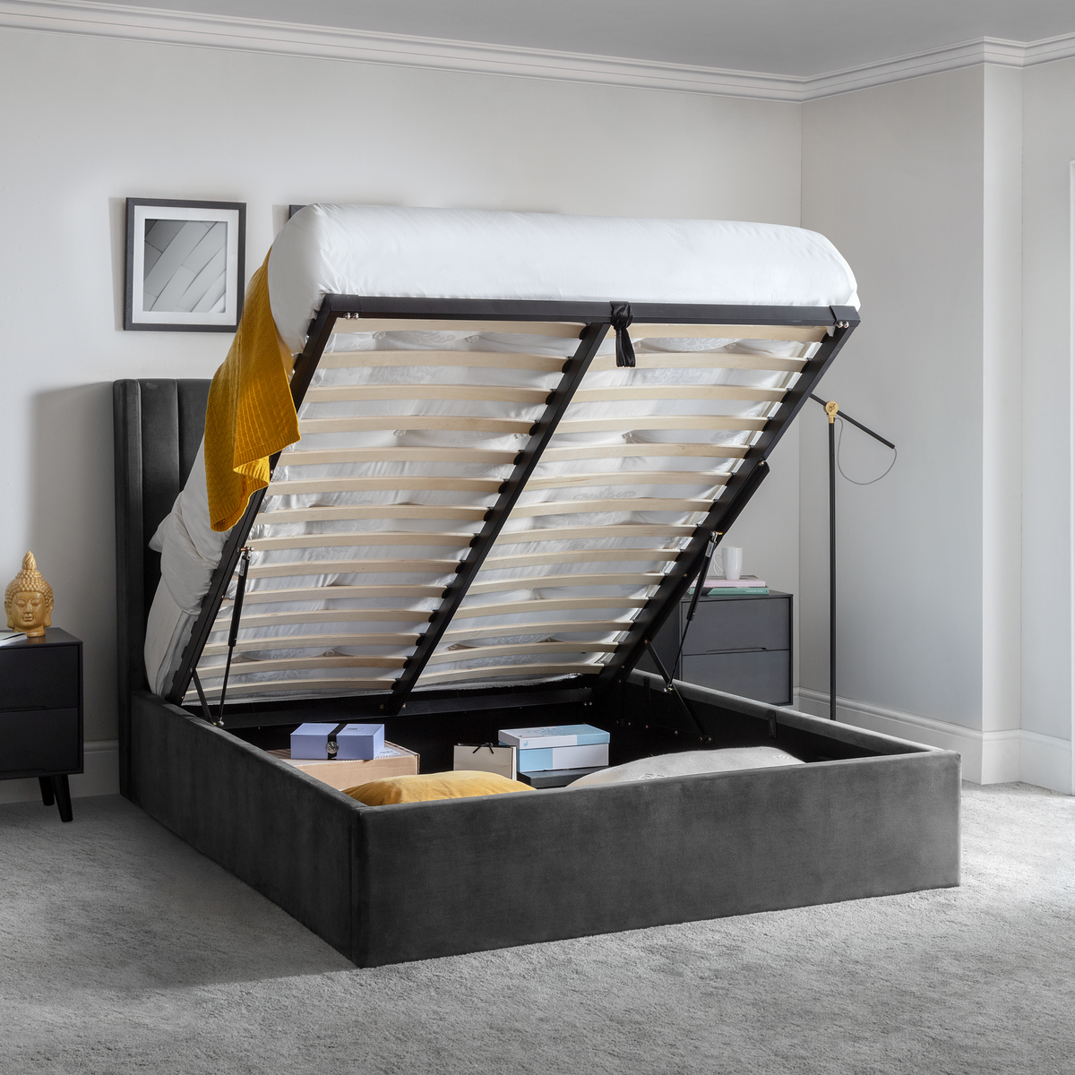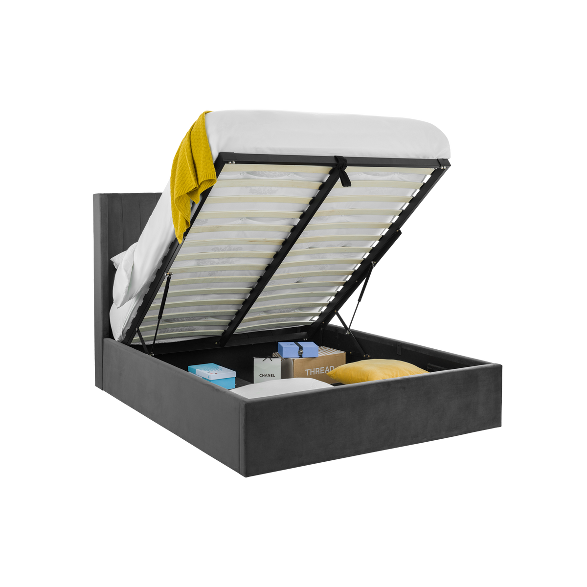 The Borden Ottoman Storage Bedframe is equipped with a convenient lift-up storage system, perfect for maximising space and keeping your room clutter-free. Transform your bedroom with the Borden Ottoman Storage Bedframe where comfort meets function.
