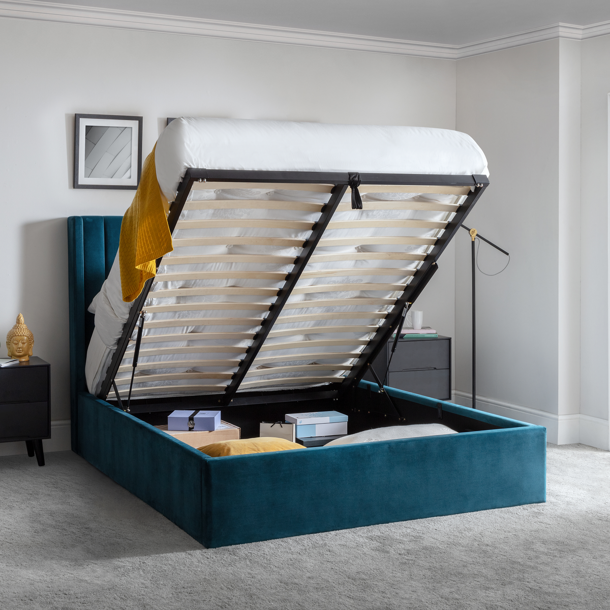 Introducing the Borden Ottoman Storage Bedframe, a perfect choice for those who value aesthetics and practicality.