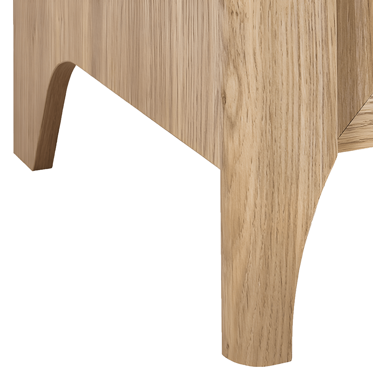 The chest features exquisitely curved edges, enhancing its sleek profile, while the raised lip along the top adds an extra layer of functionality, ensuring that items stored on top remain secure. Crafted from high-quality wood with a natural finish, this piece brings warmth and texture to any room, making it the perfect addition to contemporary and boho-inspired interiors alike.