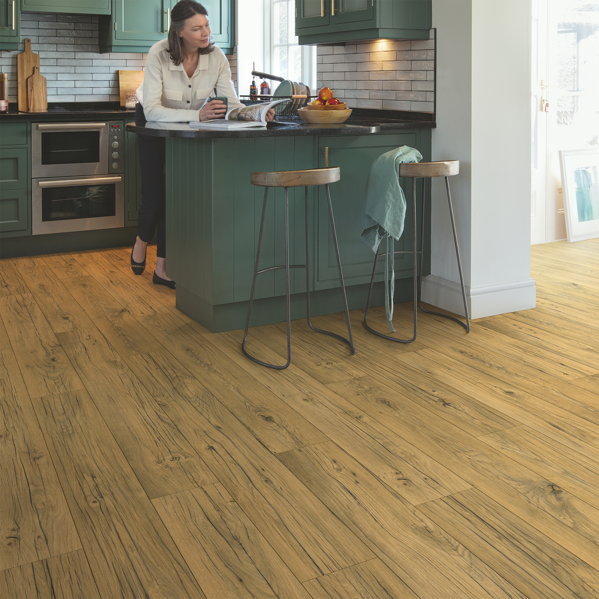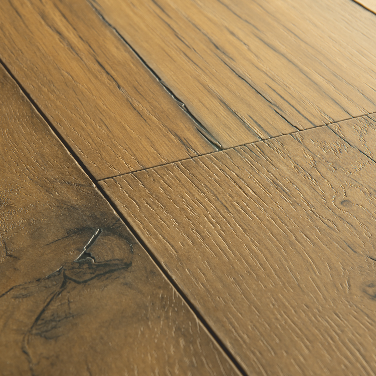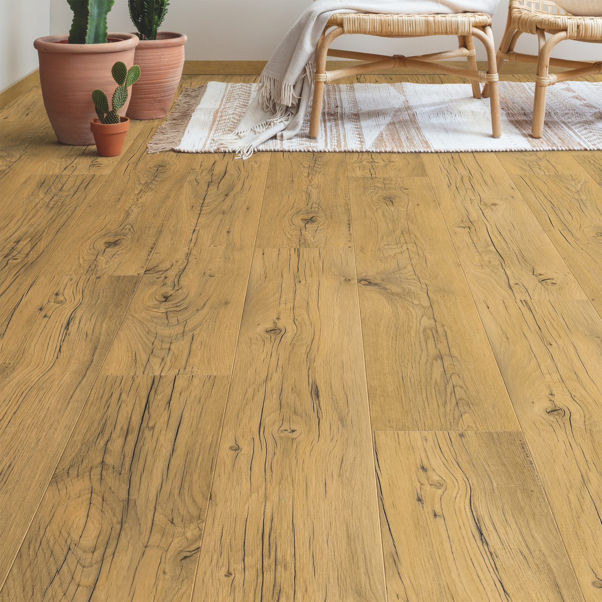 Experience the rustic charm of our Capture Cracked Oak Natural Tap flooring. The unique cracked finish highlights the natural beauty and character of oak, offering a one-of-a-kind aesthetic. This flooring is not only stylish but also durable and water-resistant, making it a perfect choice for high-end, rustic-inspired interiors.