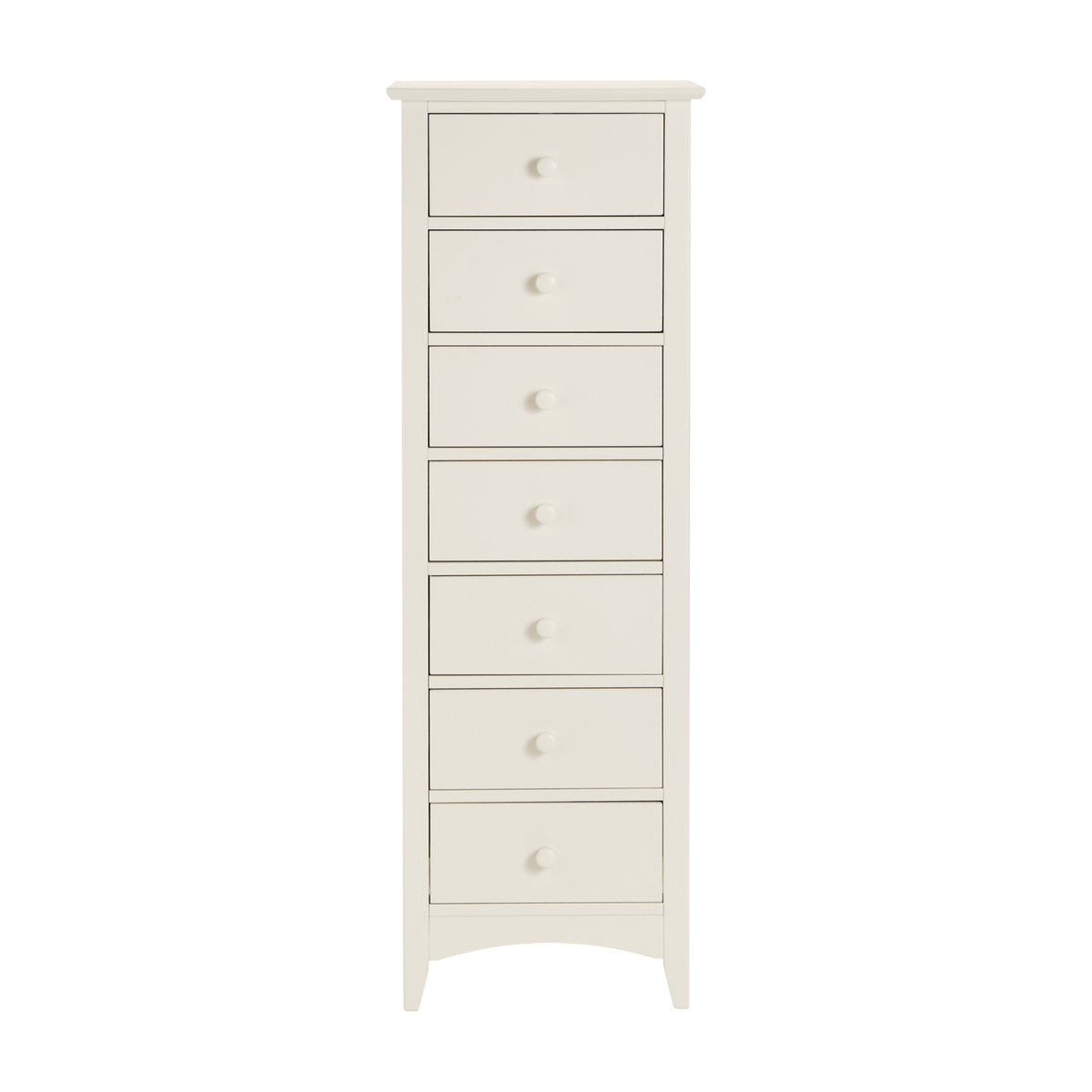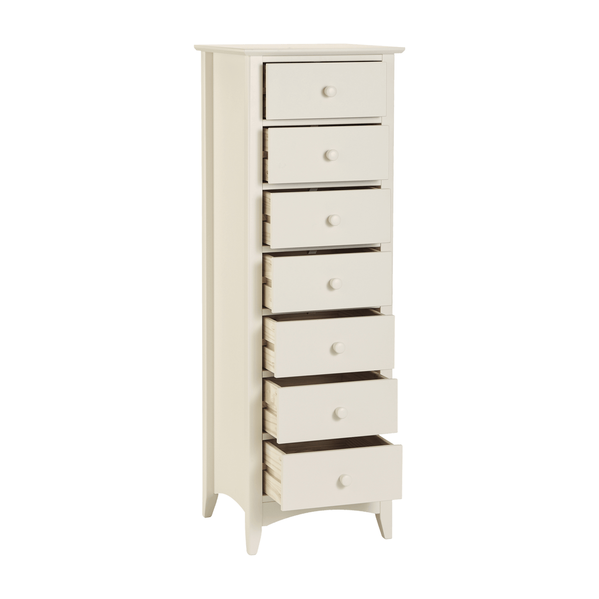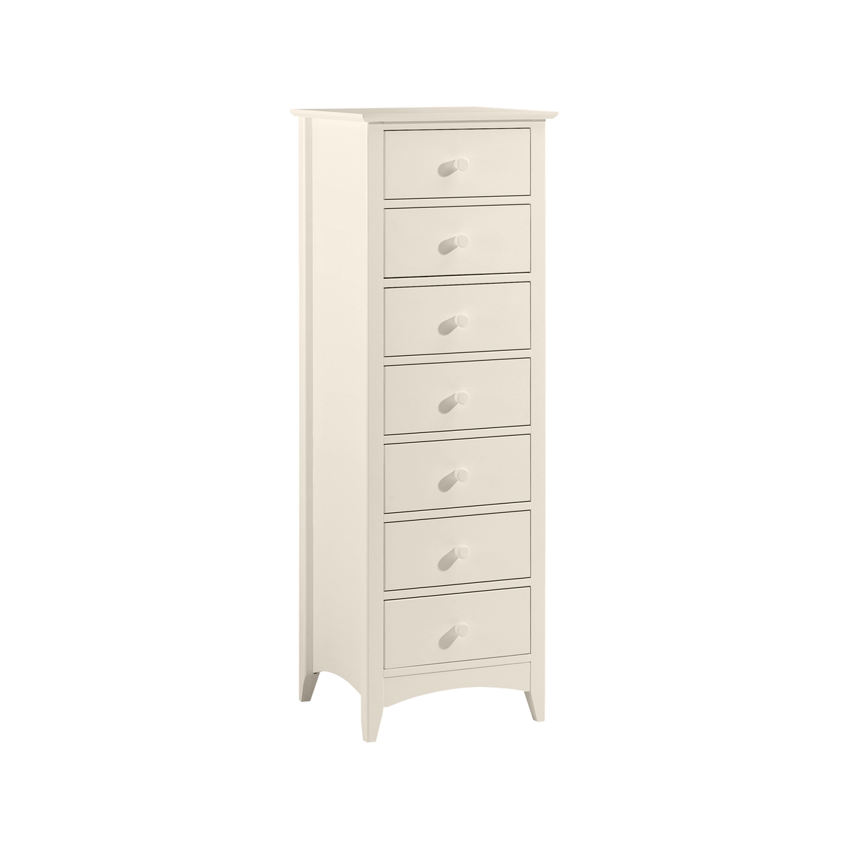 The Carmel 7 Drawer Narrow Chest is a luxurious choice for discerning homeowners. Its timeless shaker design is the perfect accompaniment to any interior style and is perfect for grown-up bedrooms and children's bedrooms alike. Solid pine frames ensure a sturdy and durable construction. The Carmel 7 drawer chest offers a great storage solution for smaller rooms given its compact footprint. Available in a stylish nan finish, this Chest Of Drawers seamlessly blends beauty and utility.