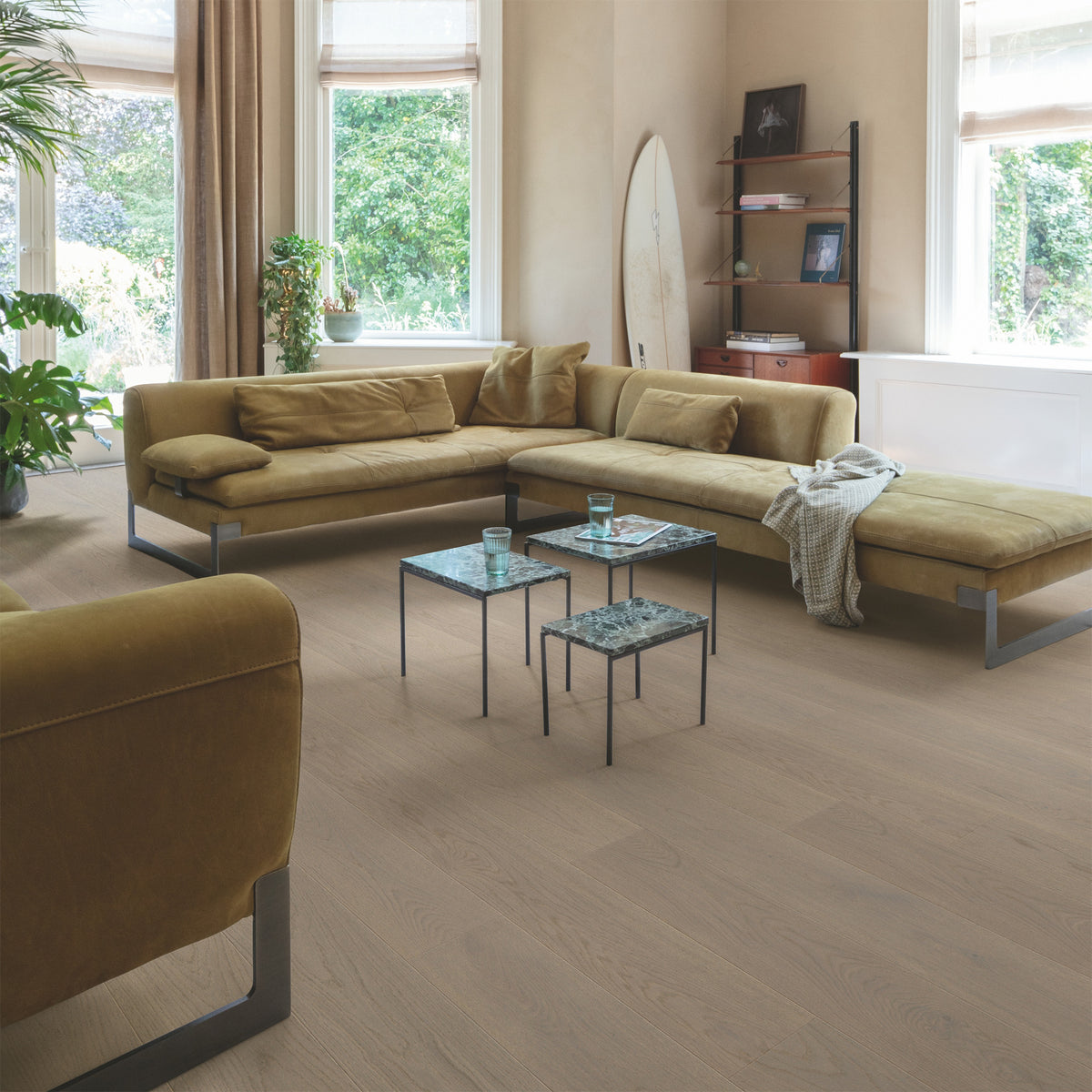 Meet Cascada and the pleasure is all yours. With natural materials and plants, you can add a spark of nature to your home. Every plank is unique and gives your home an authentic character. These water resistant wooden floors are a dream to walk on, effortlessly combining durability and natural beauty. Exactly the type of refinement your home deserves, and suitable for all rooms – including kitchens and bathrooms. Sit back and relax: this floor is up for anything.