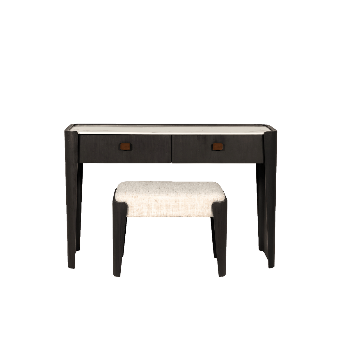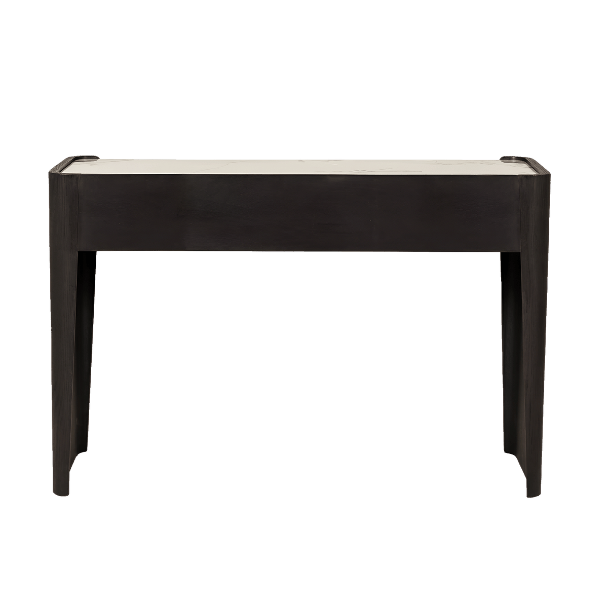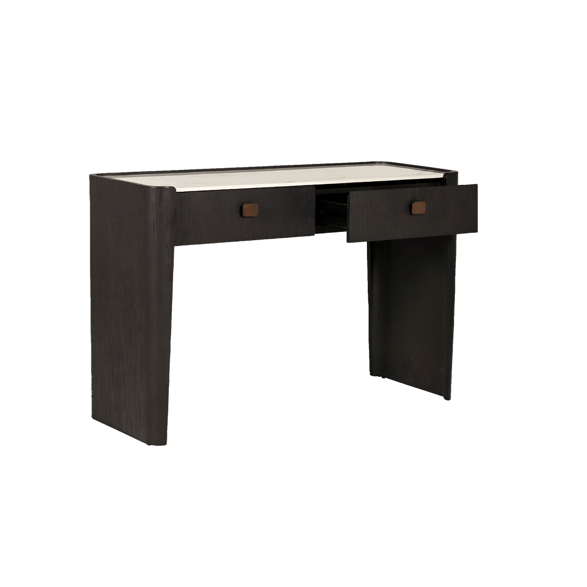 Cassandra 2 Drawer Chest of Drawers in Ebony—a pinnacle of high-end luxury and sophistication for your bedroom. Crafted with meticulous attention to detail, this bedside table exudes opulence with its sleek ebony finish and copper metal handles, adding a touch of contemporary design. Experience both style and durability with the sintered stone top, which is both stain and scratch-resistant, ensuring longevity and easy maintenance.
