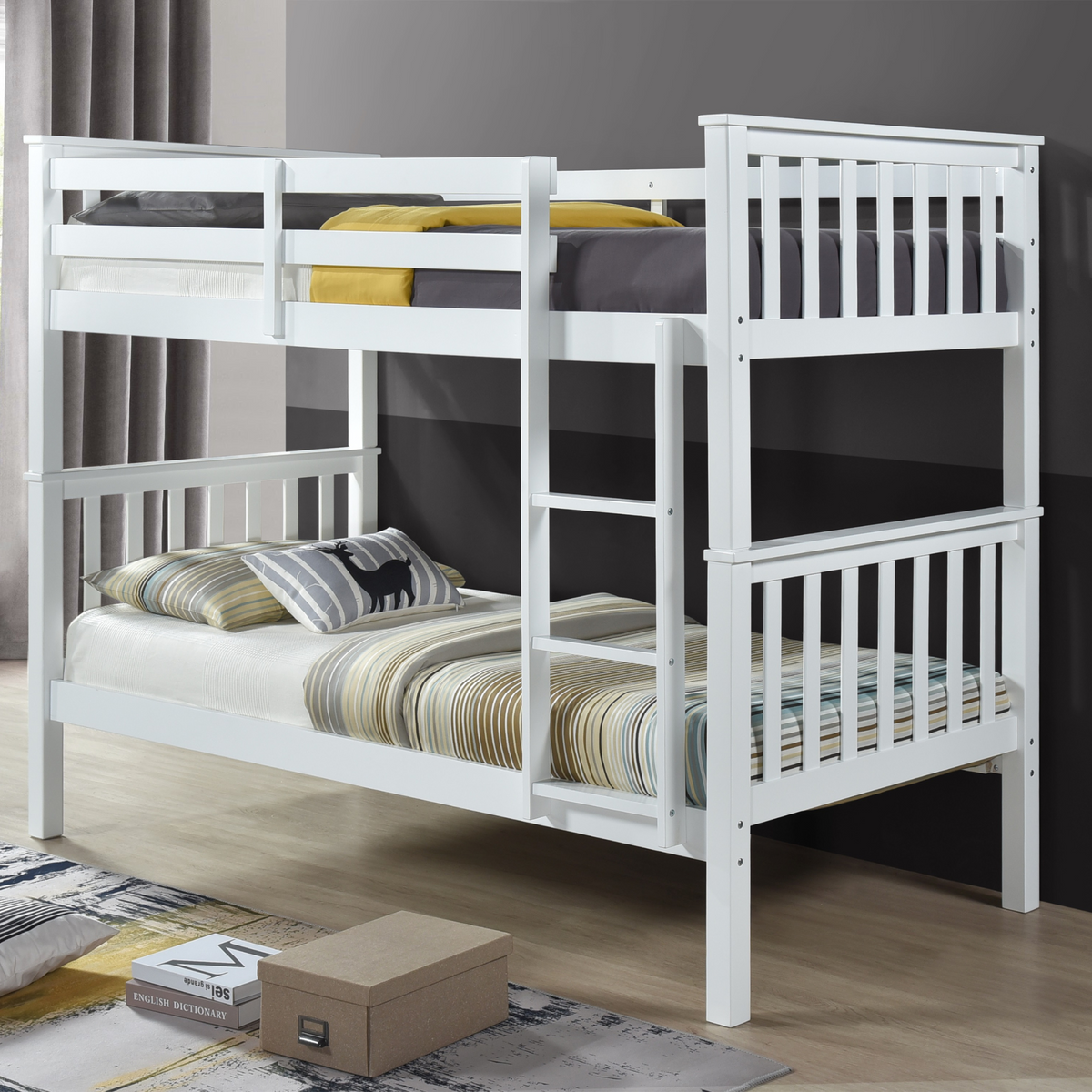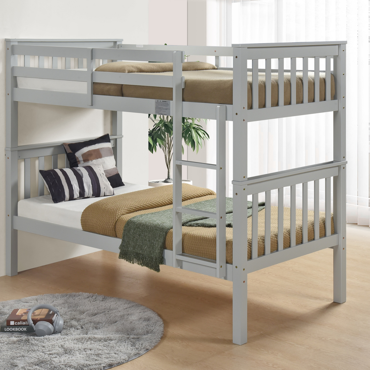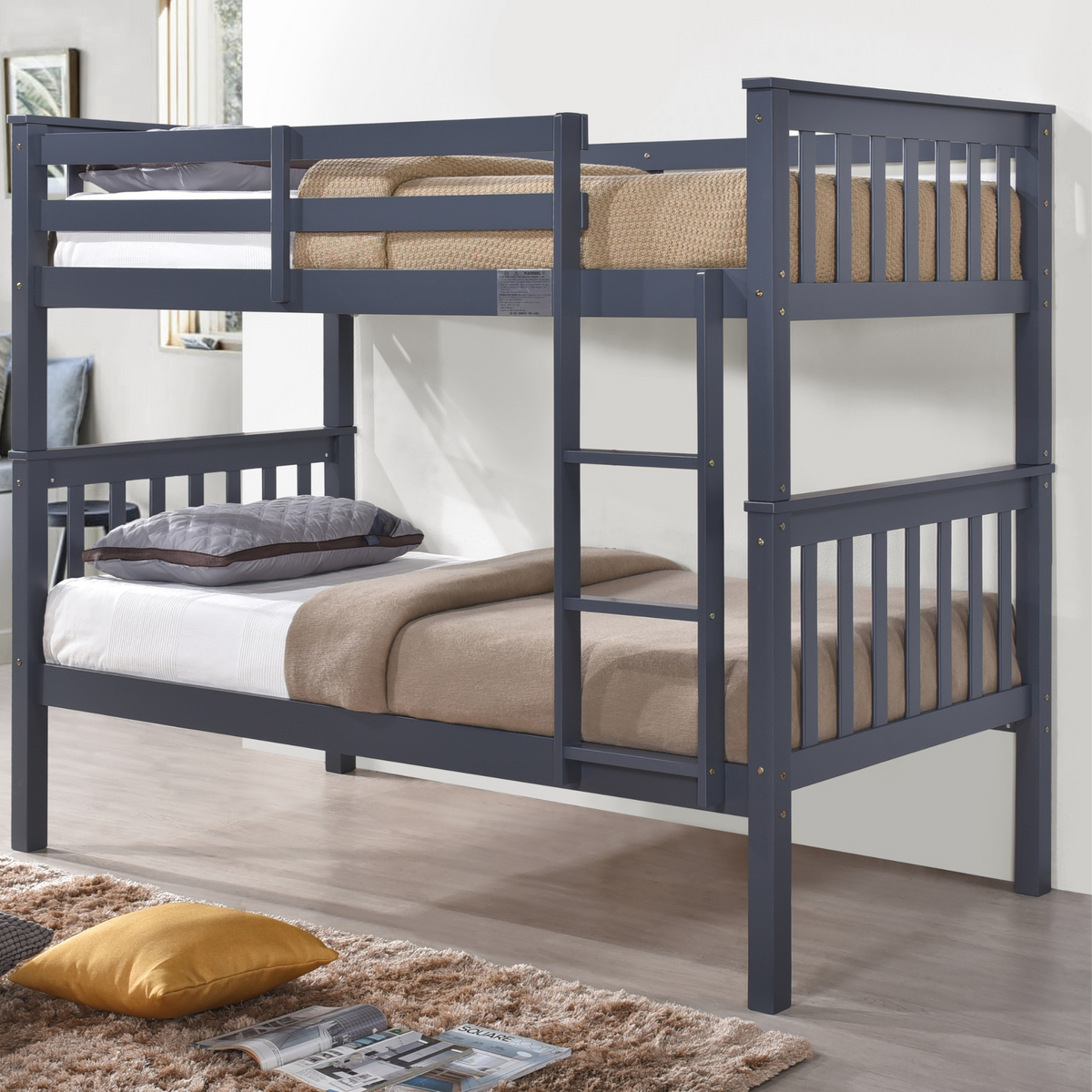 Introduce smart design and contemporary style to any room with the Colby bunk bed. Constructed from durable wood, this bunk bed offers a sophisticated aesthetic that blends seamlessly with various interior designs. Both the upper and lower bunks feature traditional vertical slatted headboards and footboards for a classic look and enhanced support. The integrated ladder is designed for safety and ease of use, ensuring secure access to the top bunk. Perfect for maximizing floor space in shared bedrooms or providing flexible sleeping arrangements for guests, the Colby bunk bed is both a practical and visually appealing addition to your home.