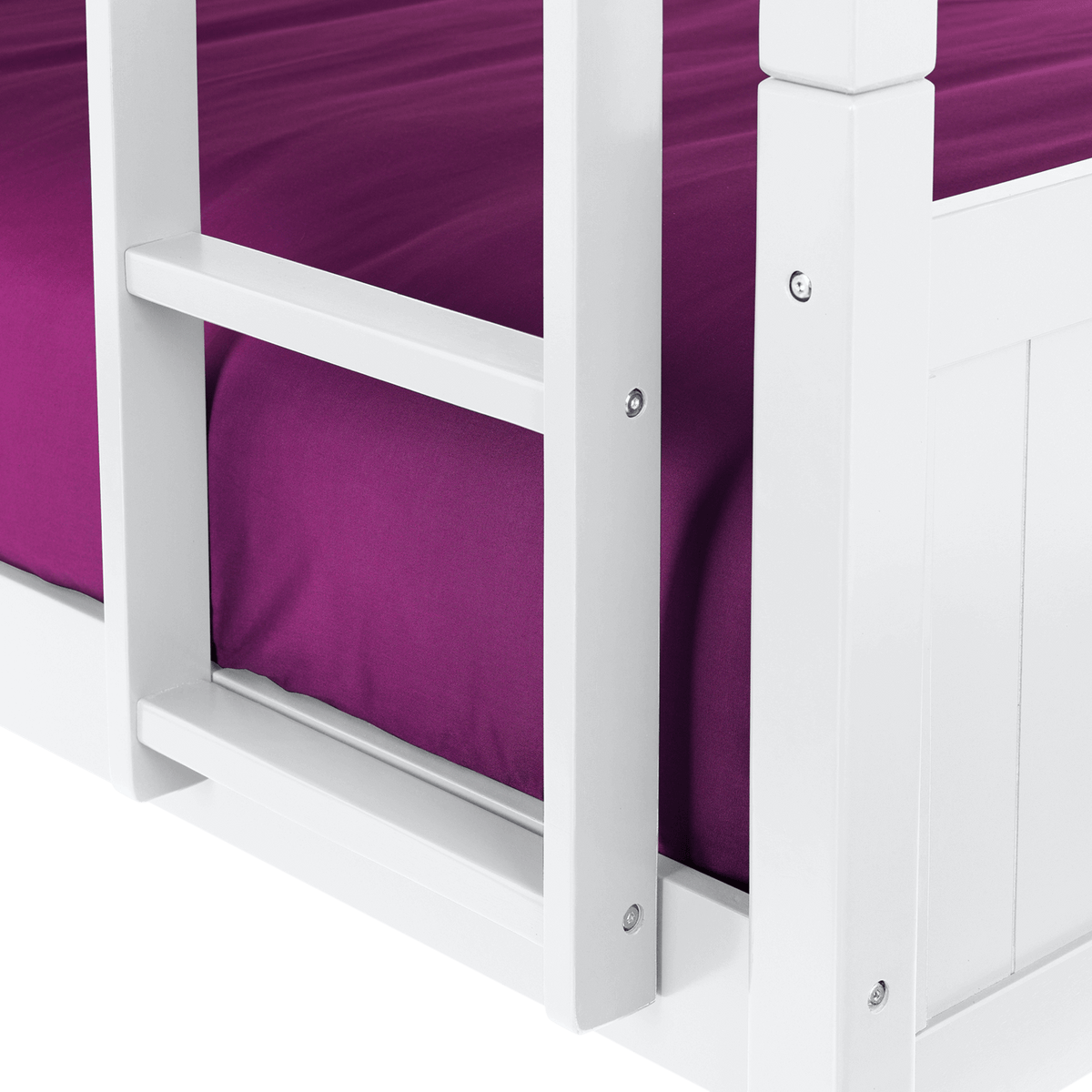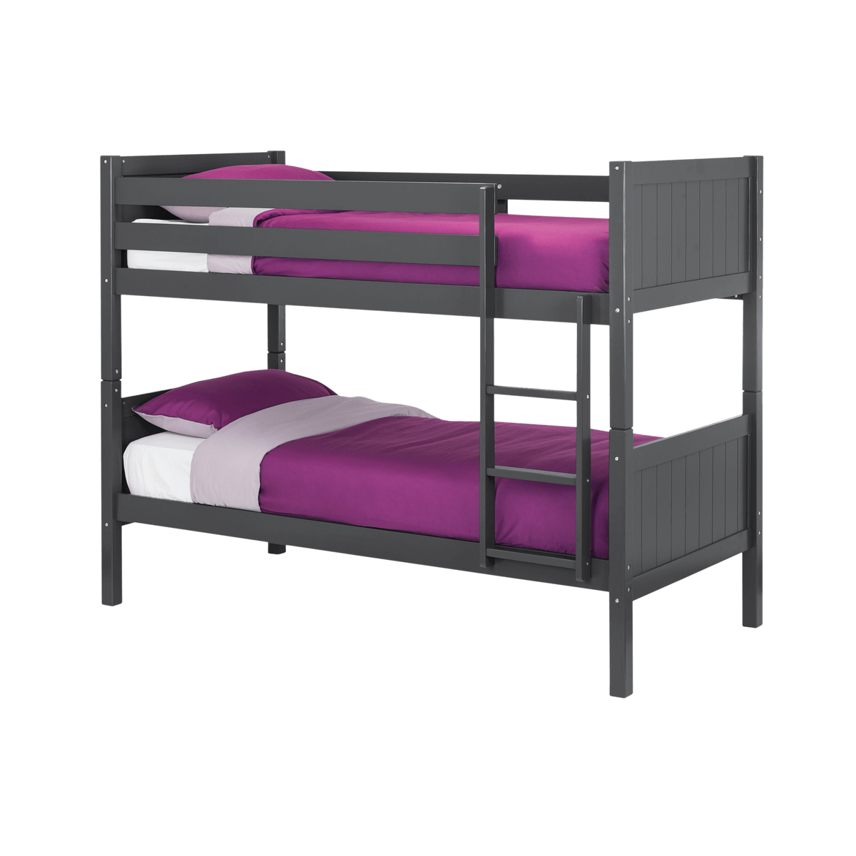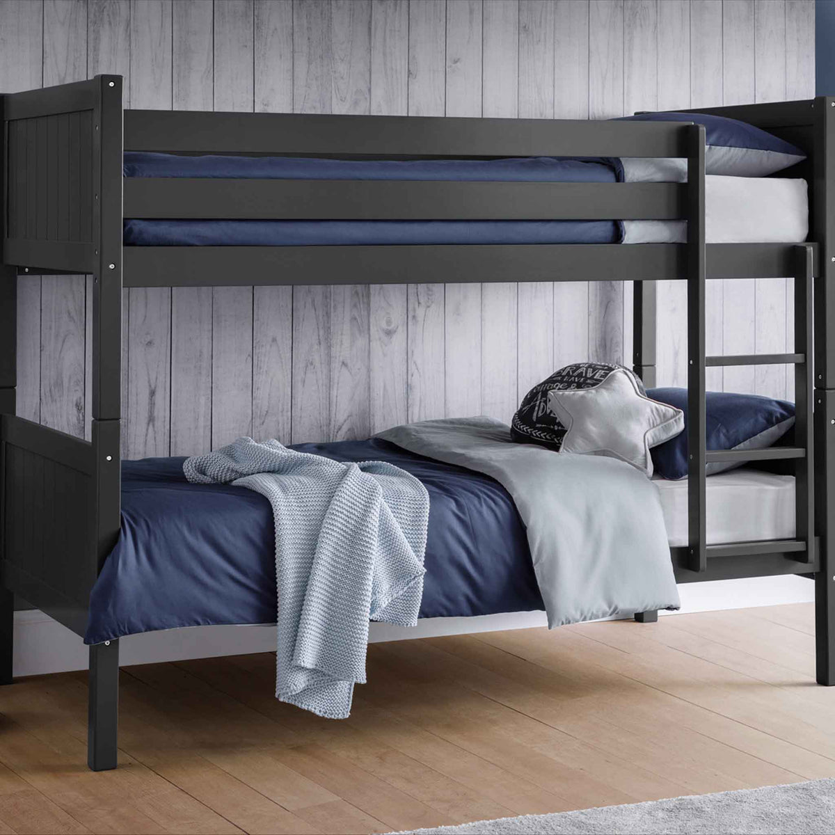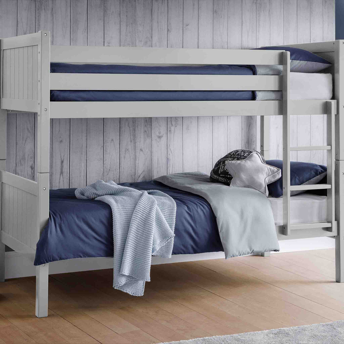 Crafted from solid pine and MDF, this bunk bed ensures durability and stability. It is available in three elegant finishes: Dove Grey, White, or Anthracite lacquer, allowing it to seamlessly blend with any bedroom décor. The design features beautifully panelled headends and footends, giving it a timeless and classic appeal.