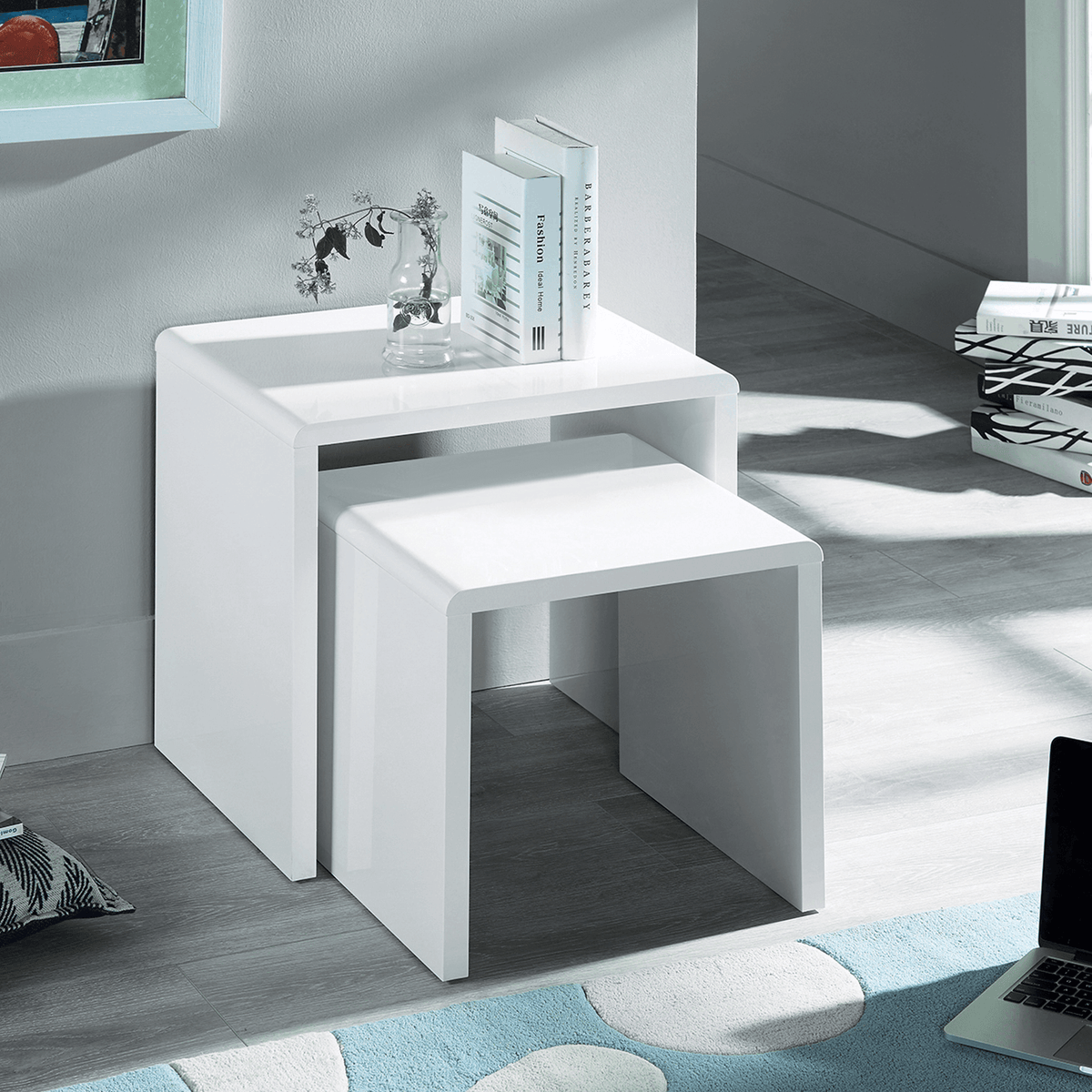 Introducing our sleek and modern Deane white nesting tables, perfect for any contemporary living space. These versatile tables can be used individually or stacked together for convenient storage, offering both functionality and style. Made with high-quality materials, they provide a durable and chic solution for your home decor needs.
