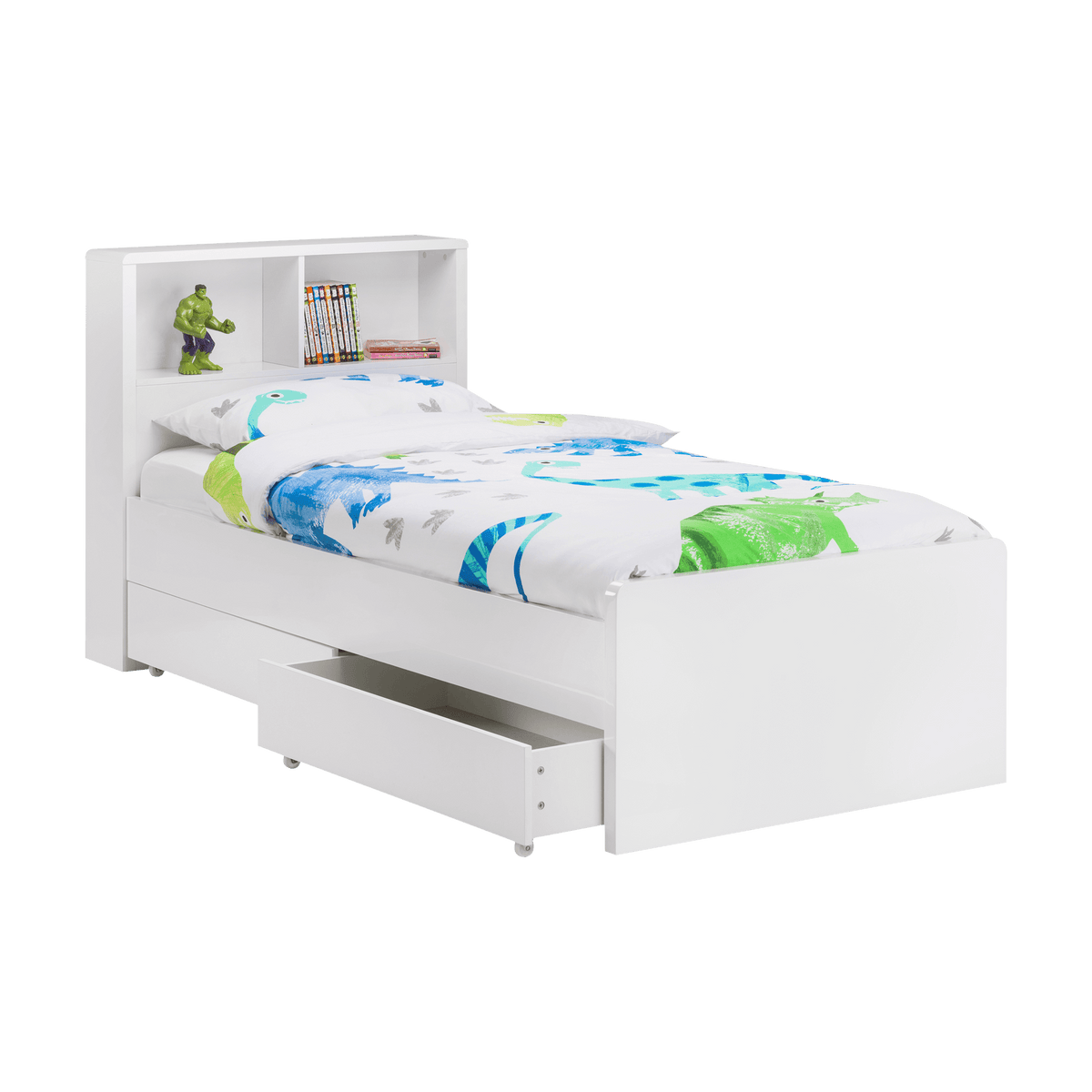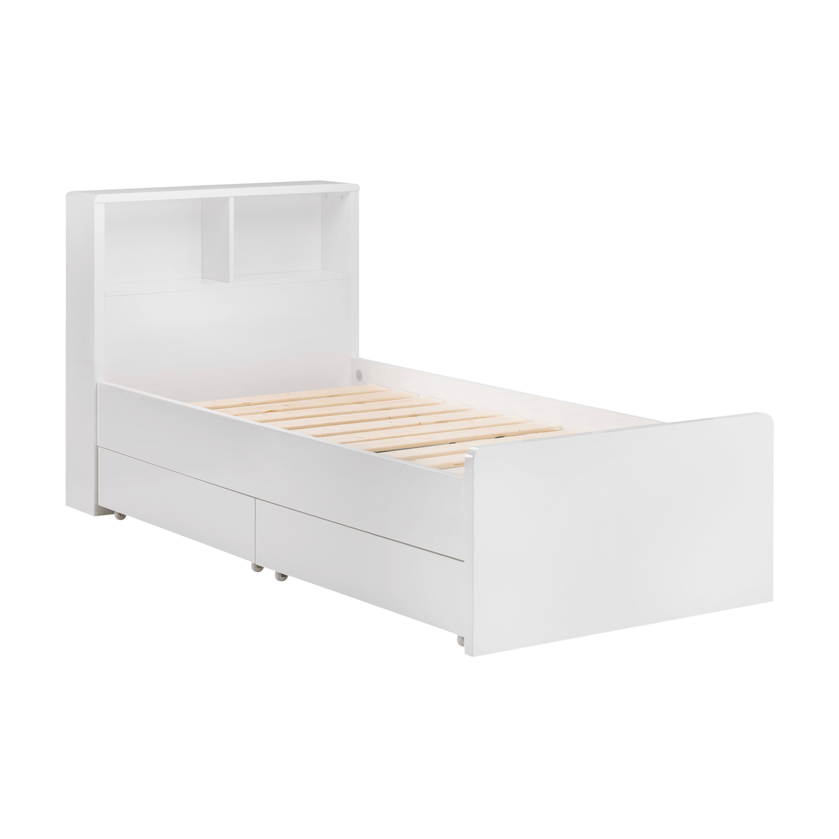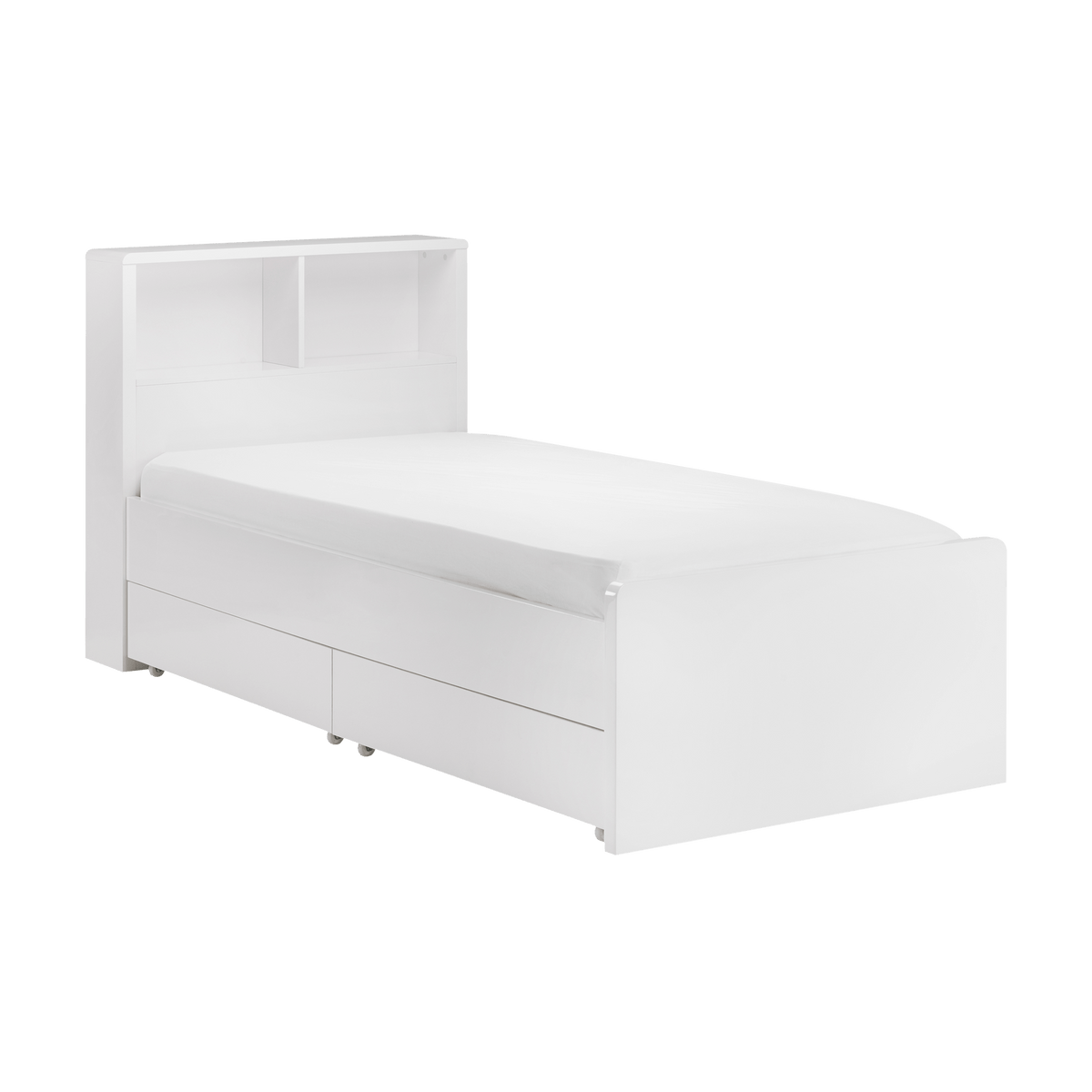 Enhance your storage with the Set of 2 Deane Underbed Drawers, designed specifically for the Deane Bookcase Bed. These sleek drawers feature a high gloss white finish and are mounted on casters for effortless access, providing additional underbed storage while perfectly complementing the Deane Bookcase Bed.