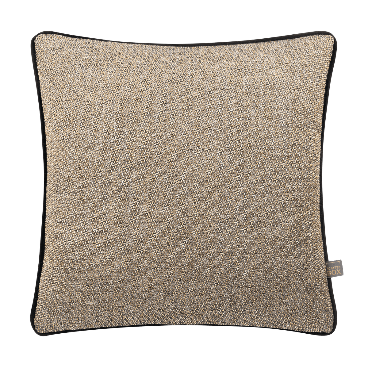 Our Demi Gold/Black cushion is made from textural jacquard fabric. The piped edges adds to the well-crafted appeal and makes it a perfect addition to any contemporary or modern interior.
