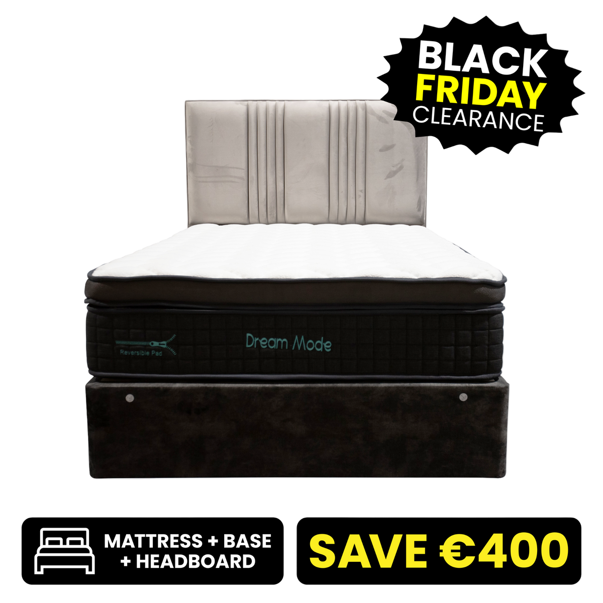 Set Includes: Lace Domino Base, 55" Full Height Headboard, Dream Mode Pocket Sprung Mattress