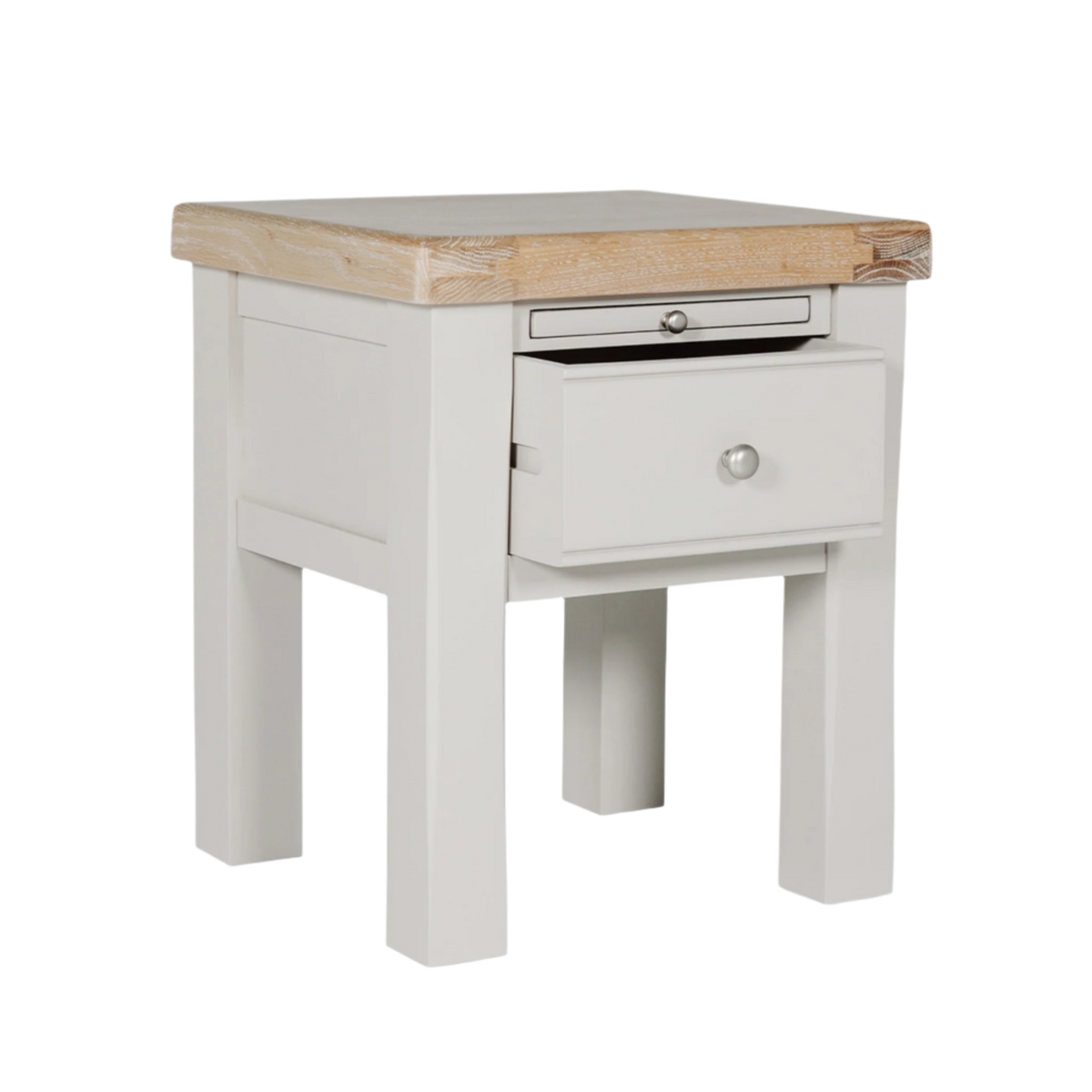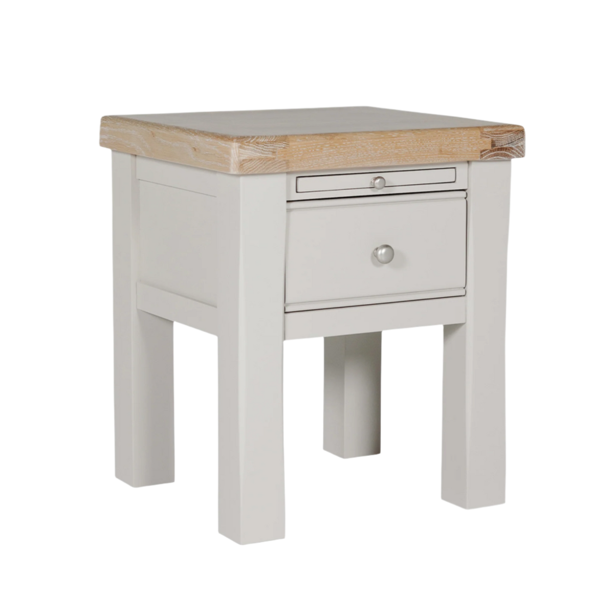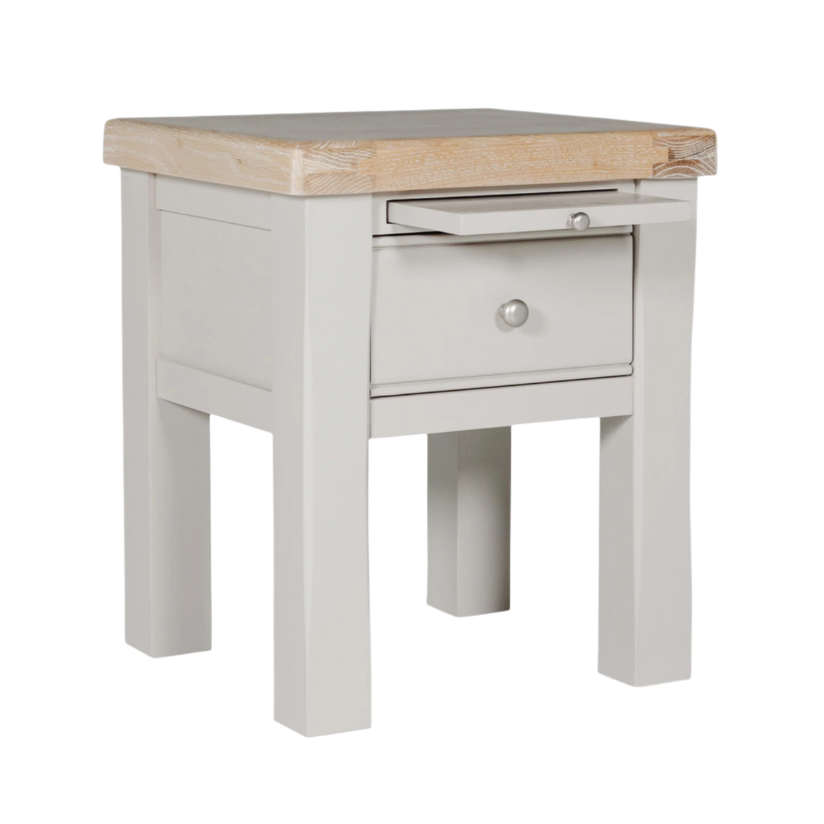 Dunne Lamp Table in Taupe enhances your living space with its versatile design and refined painted finish. Perfect for any room, this lamp table is ideal for holding lamps, decor, or essentials, seamlessly combining style and functionality.