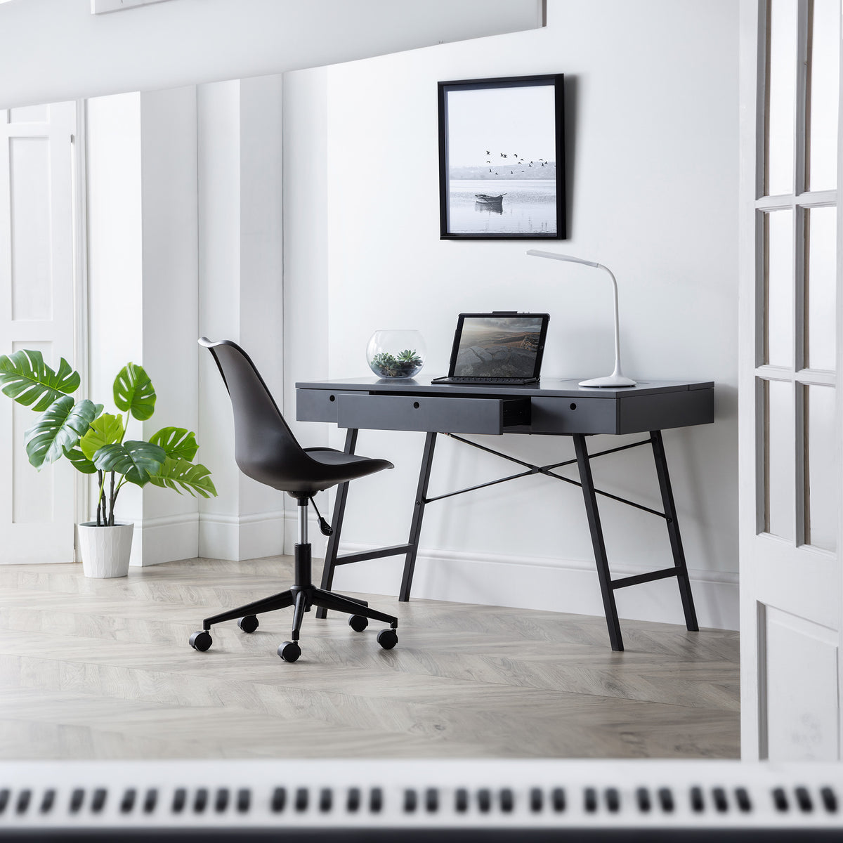 Enhance your home with the Elena Office Chair. The super sleek Elena Office Chair offers a contemporary, futuristic look perfect for home and office use with its adjustable seat height. This eye-catching chair offers an easy to clean PU cushion upon a polyropylene seat. Perfect for those who value desk chairs that blend style and functionality. Available in various colours.