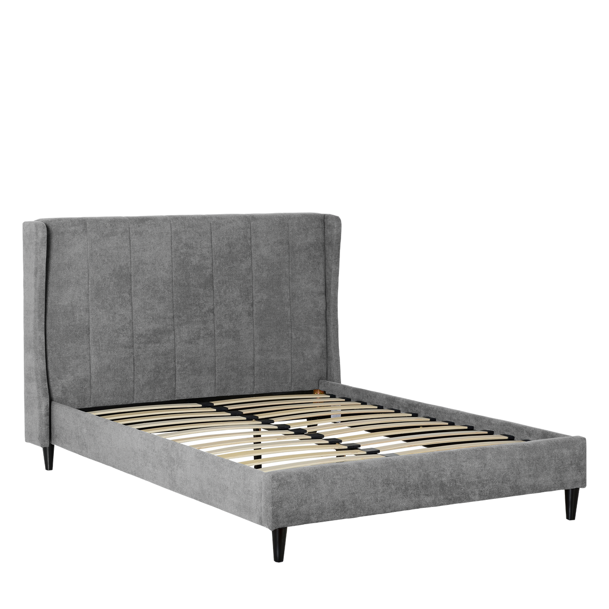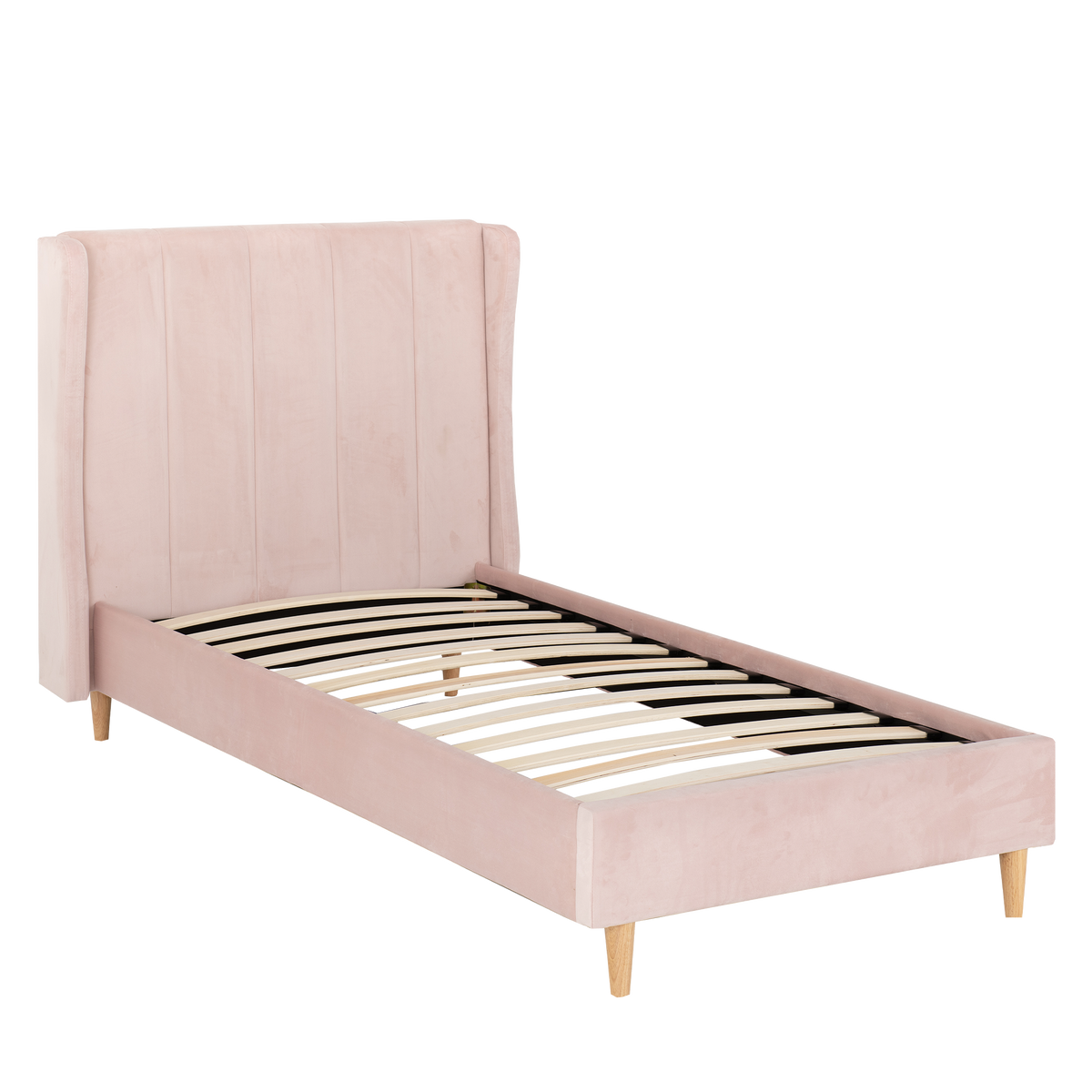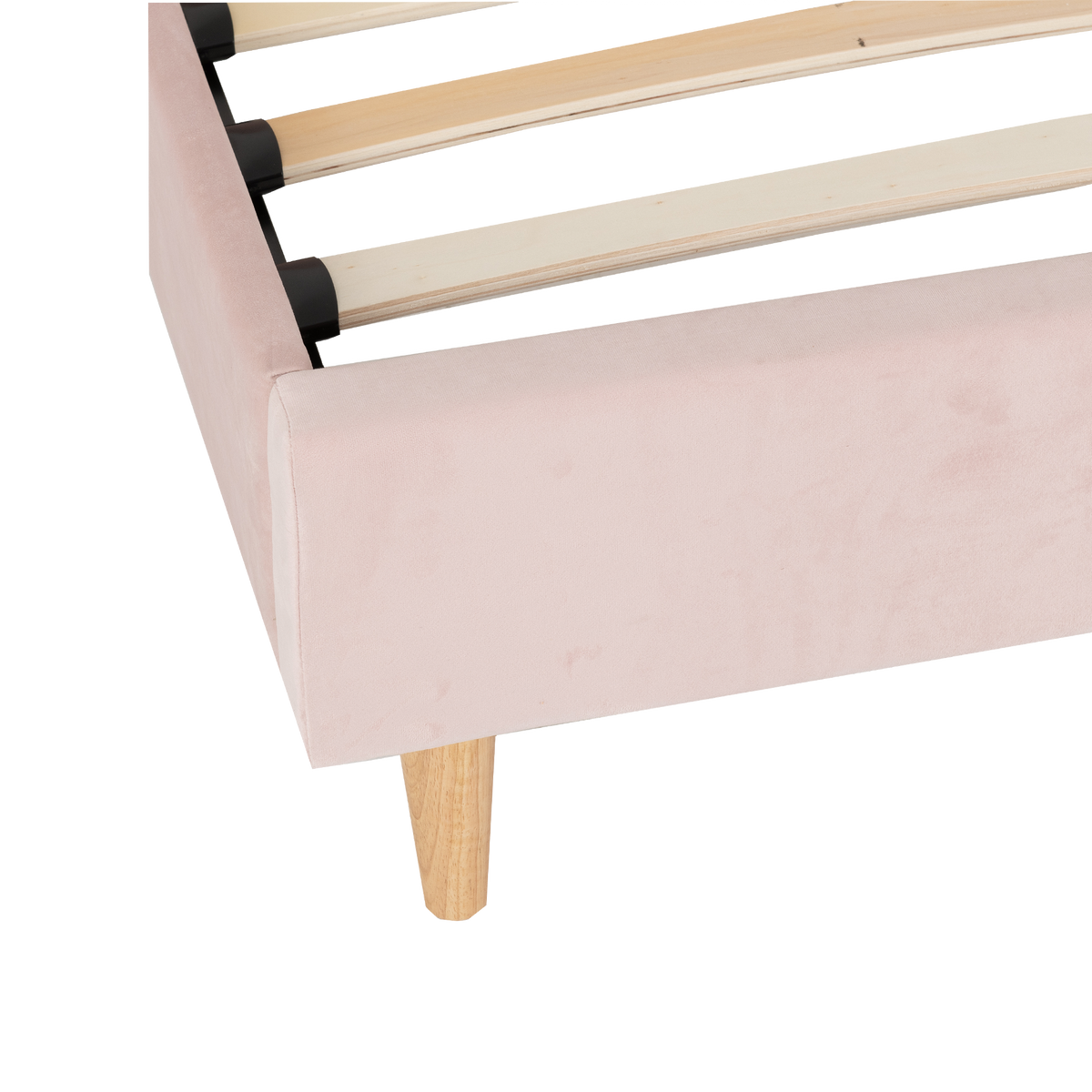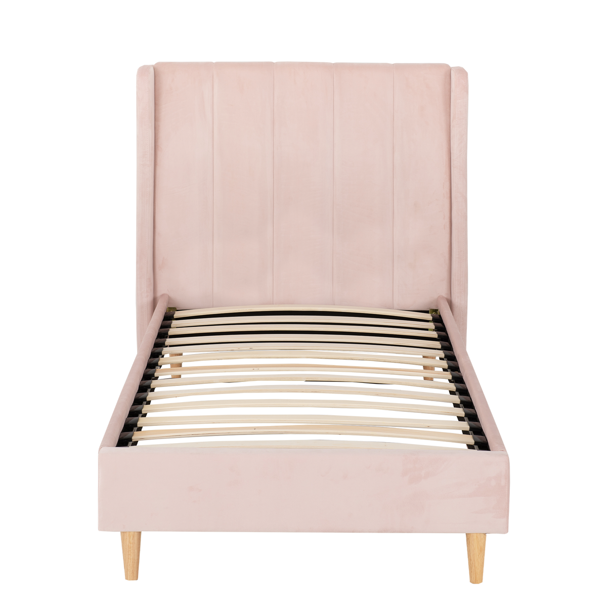 The Emily Bedframe features sturdy wooden legs, elevating the bed for a light, airy feel and improved support. While the laminated sprung slats provide superior support and comfort, promoting durability and a restful sleep experience.