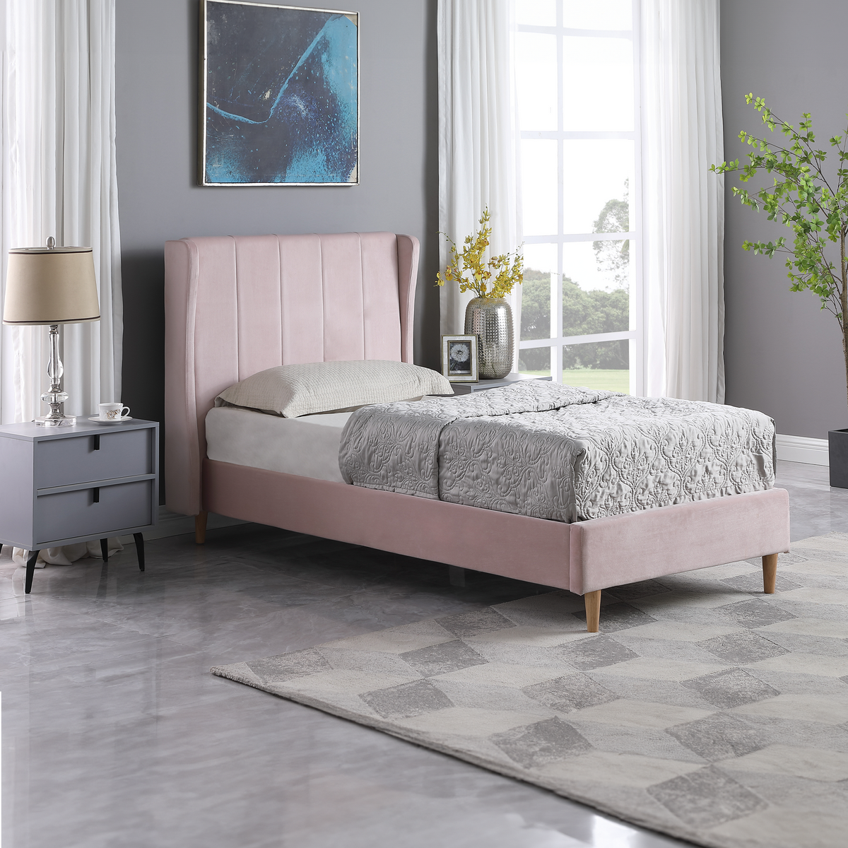 Elevate your room with the Emily Bedframe, designed to combine comfort and style.