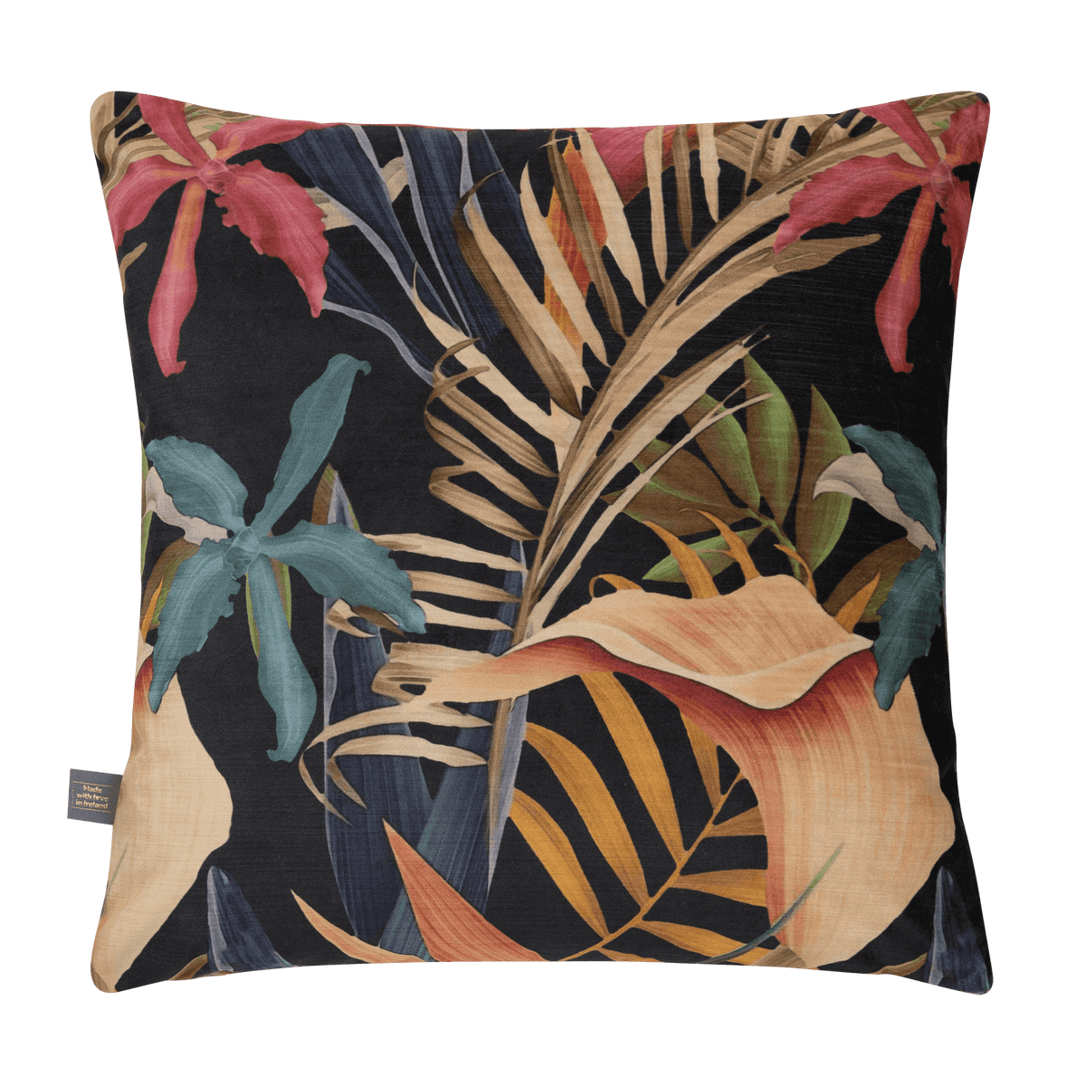 This eye-catching Fia cushion presents a stunning element of floral design and allows its magnetic quality to take the focus in any interior. Set in a living room or bedroom, the velvet feel, knife-edge finished cushion will elevate the experience of rest in either space.