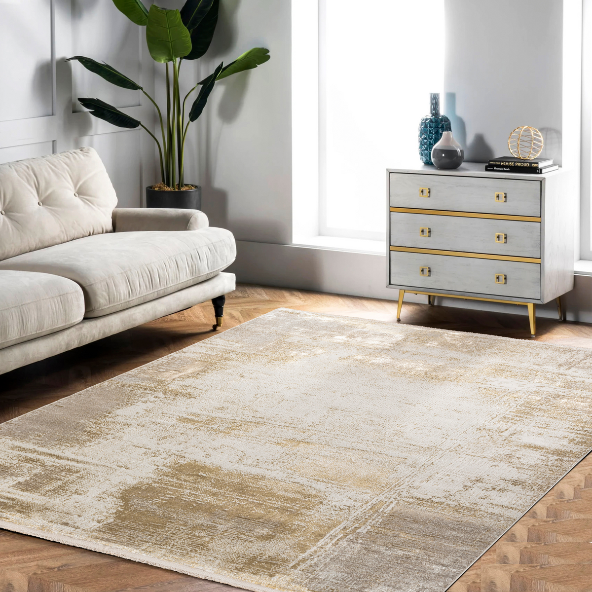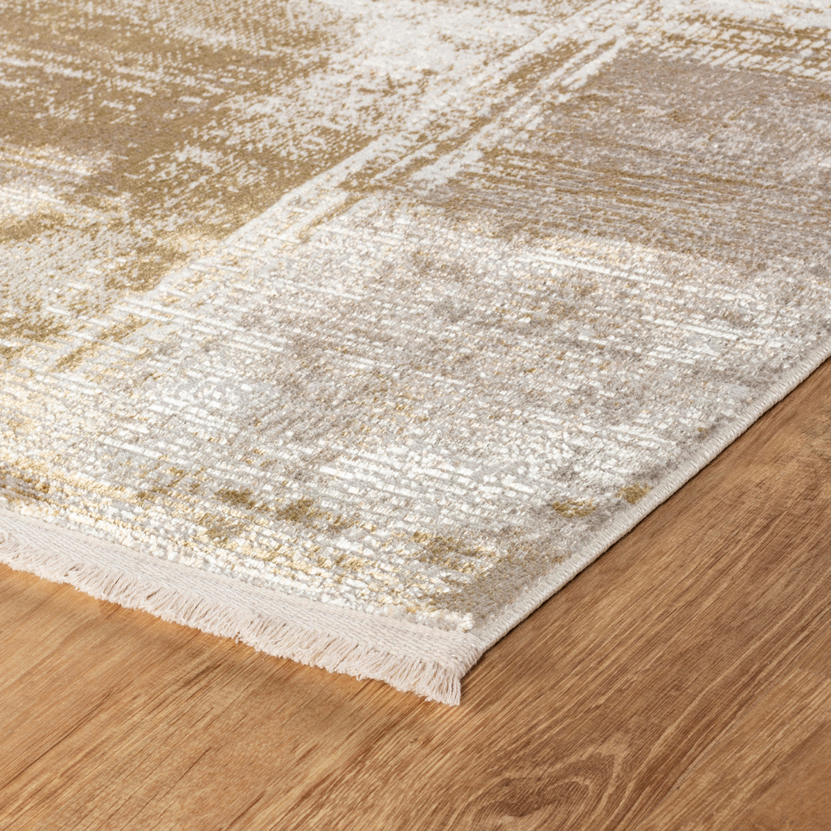 Elevate your space with the Fiesta Abstract Gold rug, featuring a sophisticated gold and white design that adds warmth and elegance to any room. Available in three sizes, this rug offers versatile options to suit various spaces, from cozy corners to larger living areas. Crafted to blend contemporary style with timeless appeal, it enhances your décor while providing a comfortable foundation underfoot. Ideal for those seeking a refined yet inviting atmosphere.