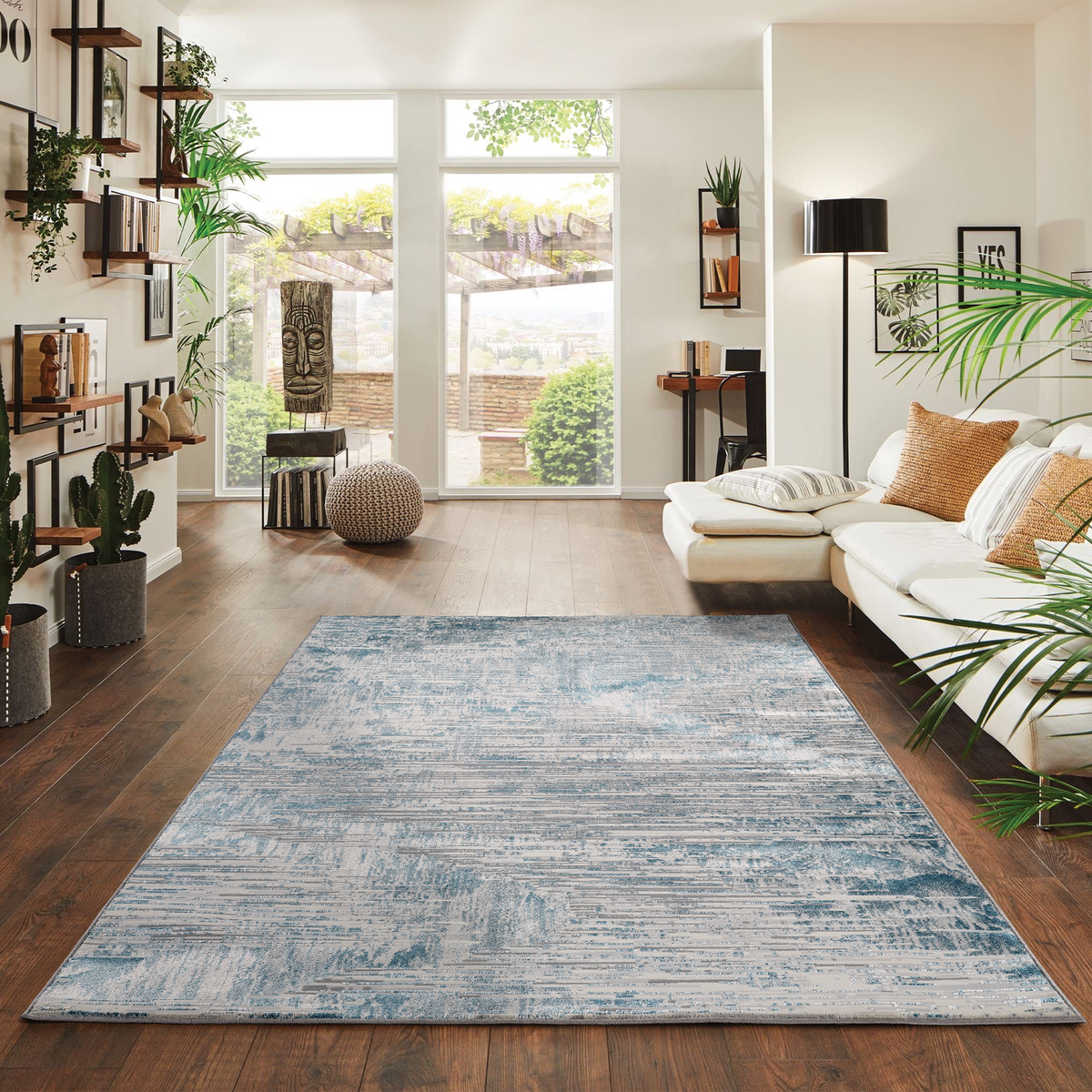 Bring contemporary elegance into your home with our Florence Storm Blue Rug