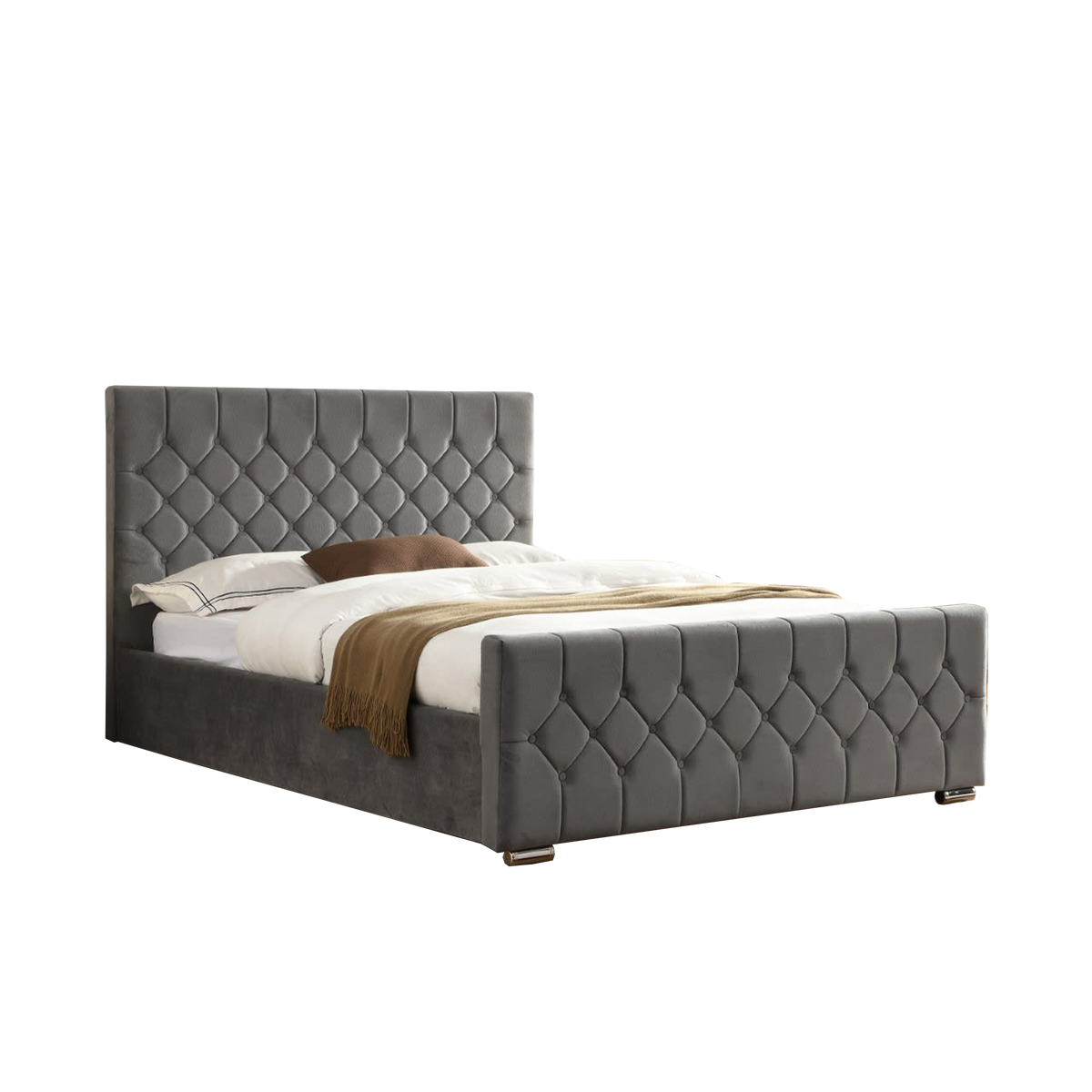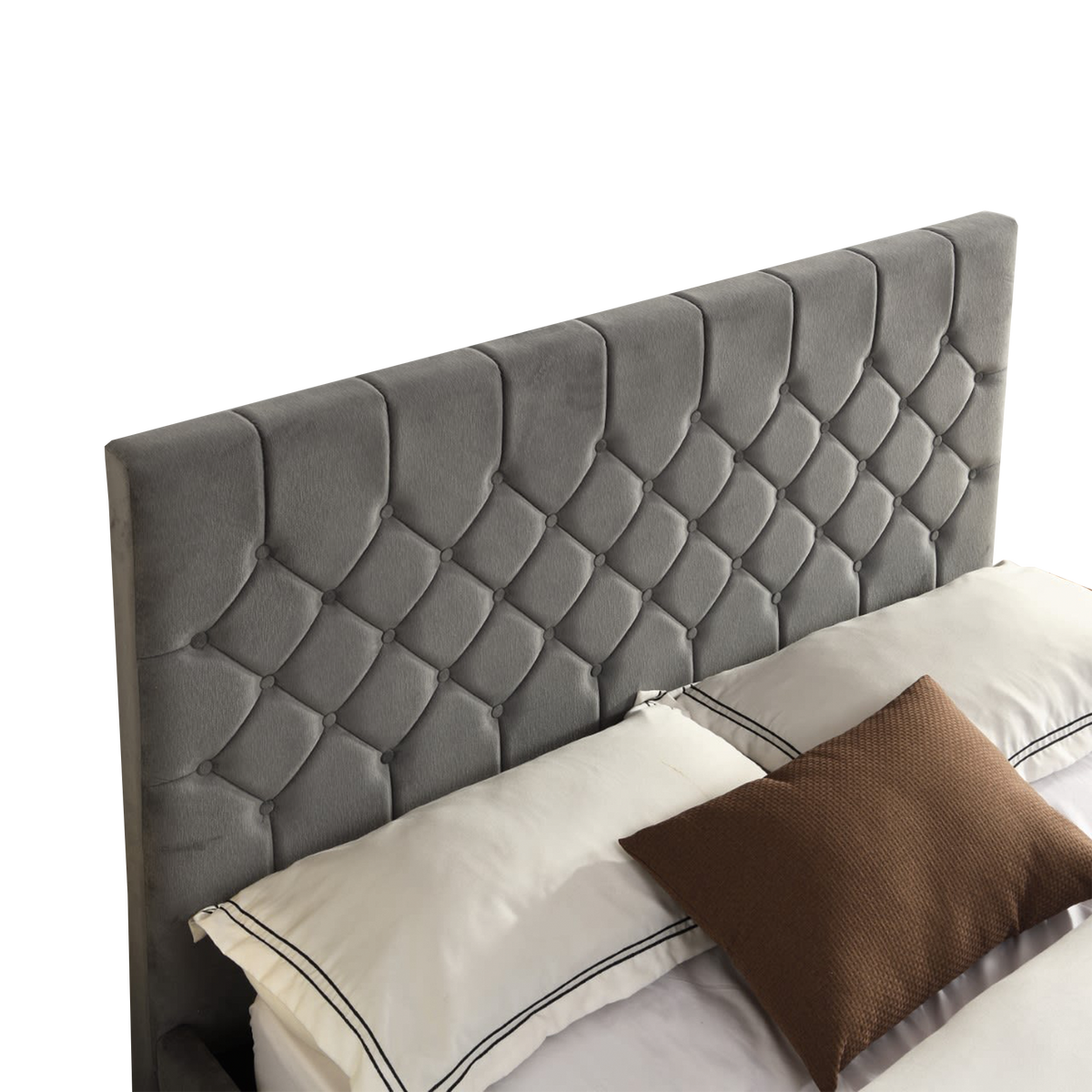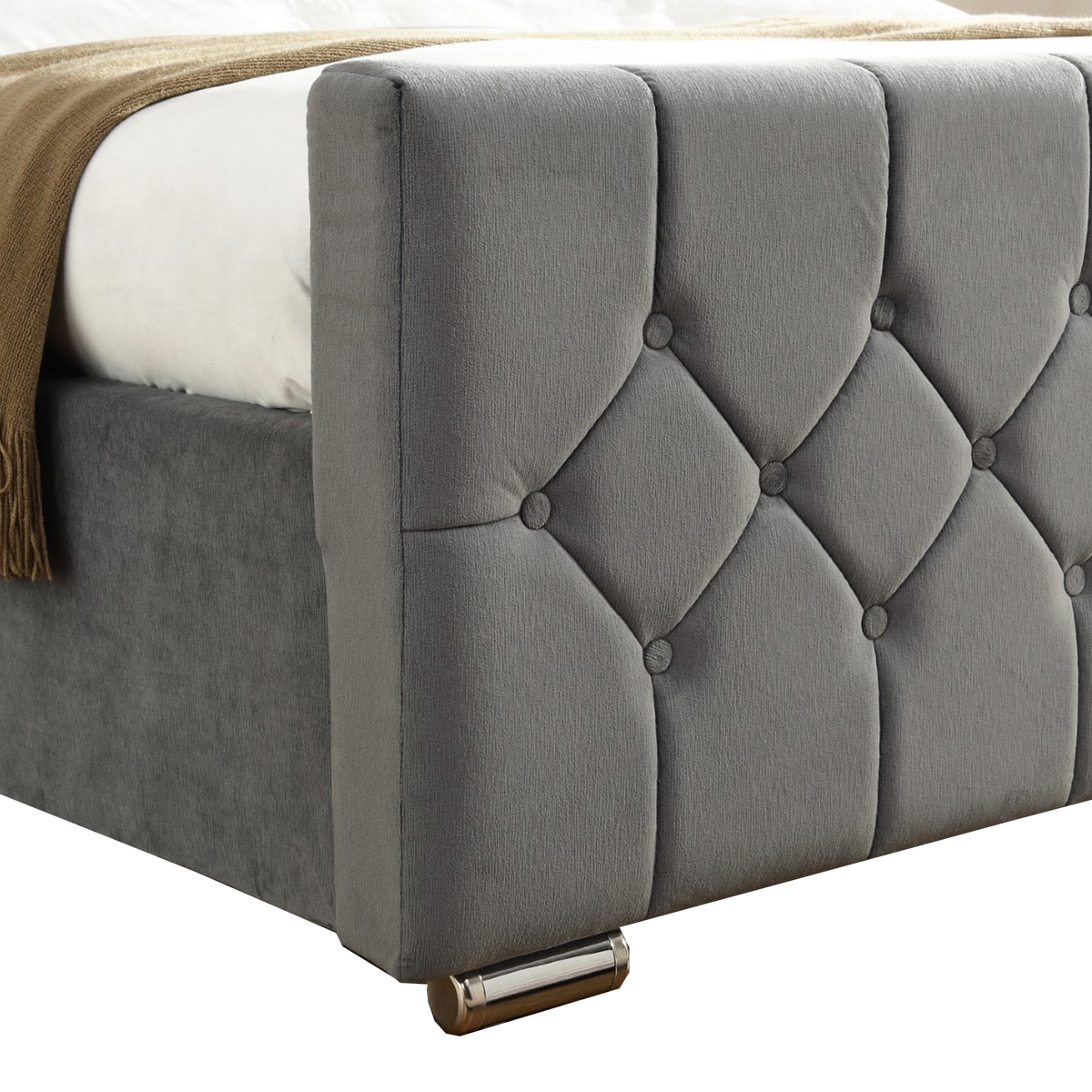 Upholstered in soft, high-quality chenille fabric the Gemma Bedframe provides a soft, plush feel. The headboard and footboard are adorned with a sophisticated diamond-stitched design and feature a button-tufted back headboard, adding a touch of luxury to your room.