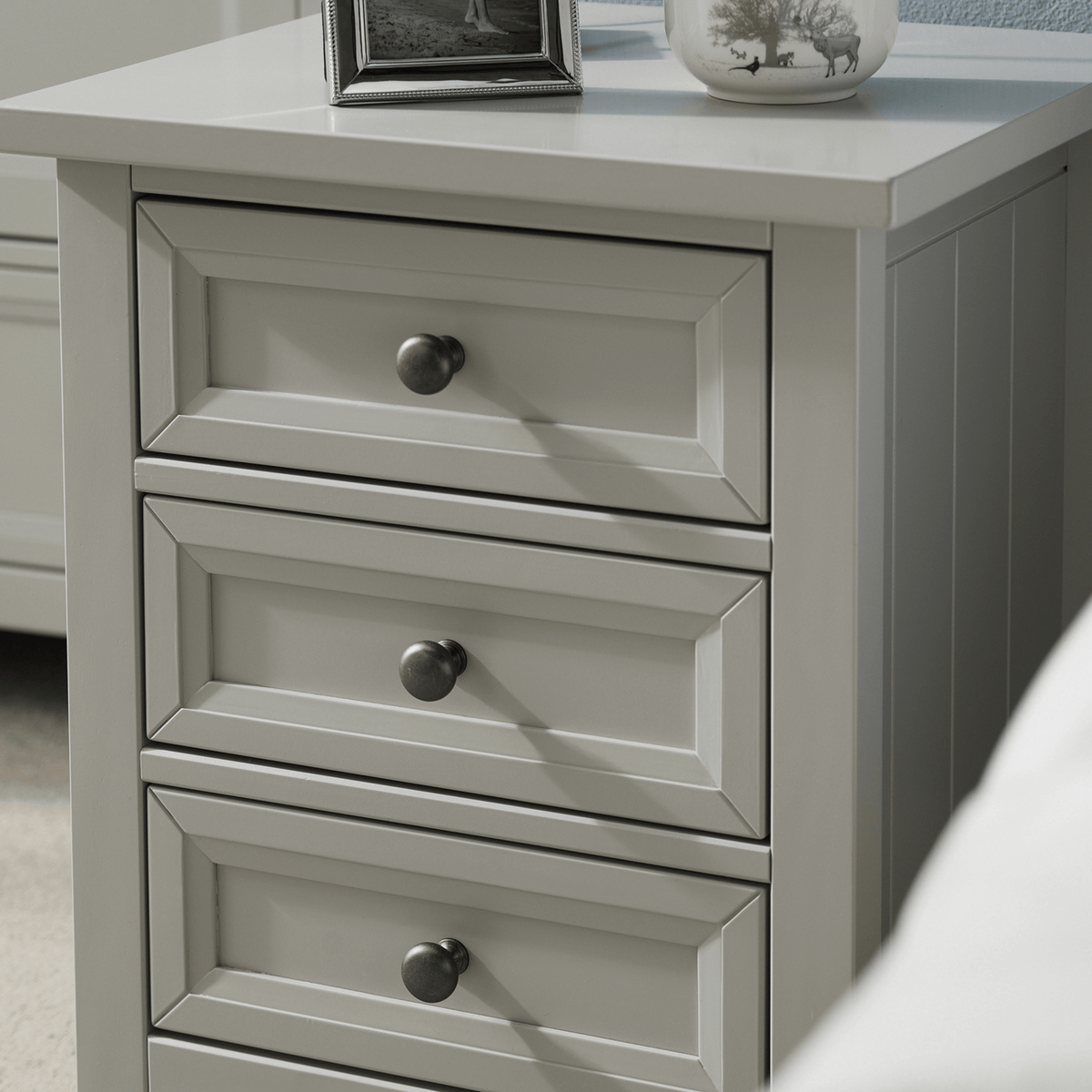 Transform your bedroom with the Greenwich 3 Drawer Bedside. This exquisite piece, inspired by the timeless elegance of New England style, offers not only exceptional functionality with its three spacious drawers but also a touch of sophistication that will elevate any bedroom decor. Crafted with meticulous attention to detail, it’s perfect for storing your nightly essentials while adding a refined charm to your living space.