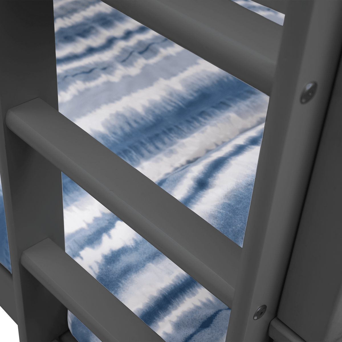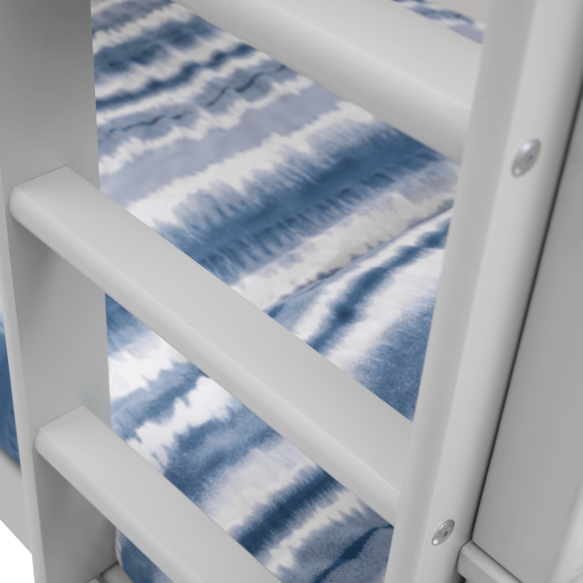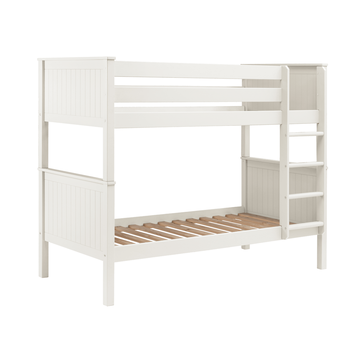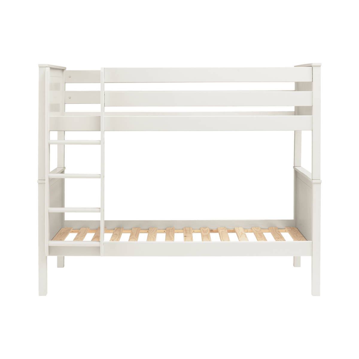 Crafted from lacquered MDF (Medium-Density Fiberboard), it offers a smooth and resilient finish that enhances its longevity. The bunk bed's structure ensures stability and safety, making it an excellent choice for children's rooms or guest spaces. It’s simple, clean lines and neutral design allow it to blend seamlessly with various interior styles, providing both functionality and style.