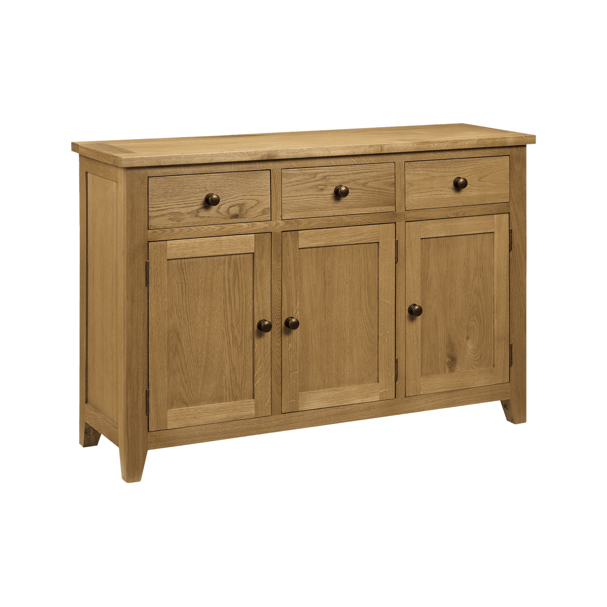 Introducing our elegant Josie oak sideboard, crafted from high-quality solid oak. Featuring three spacious drawers and three cabinets, it offers ample storage for your dining room or living area. The timeless design and natural wood finish make it a versatile addition to any home decor.