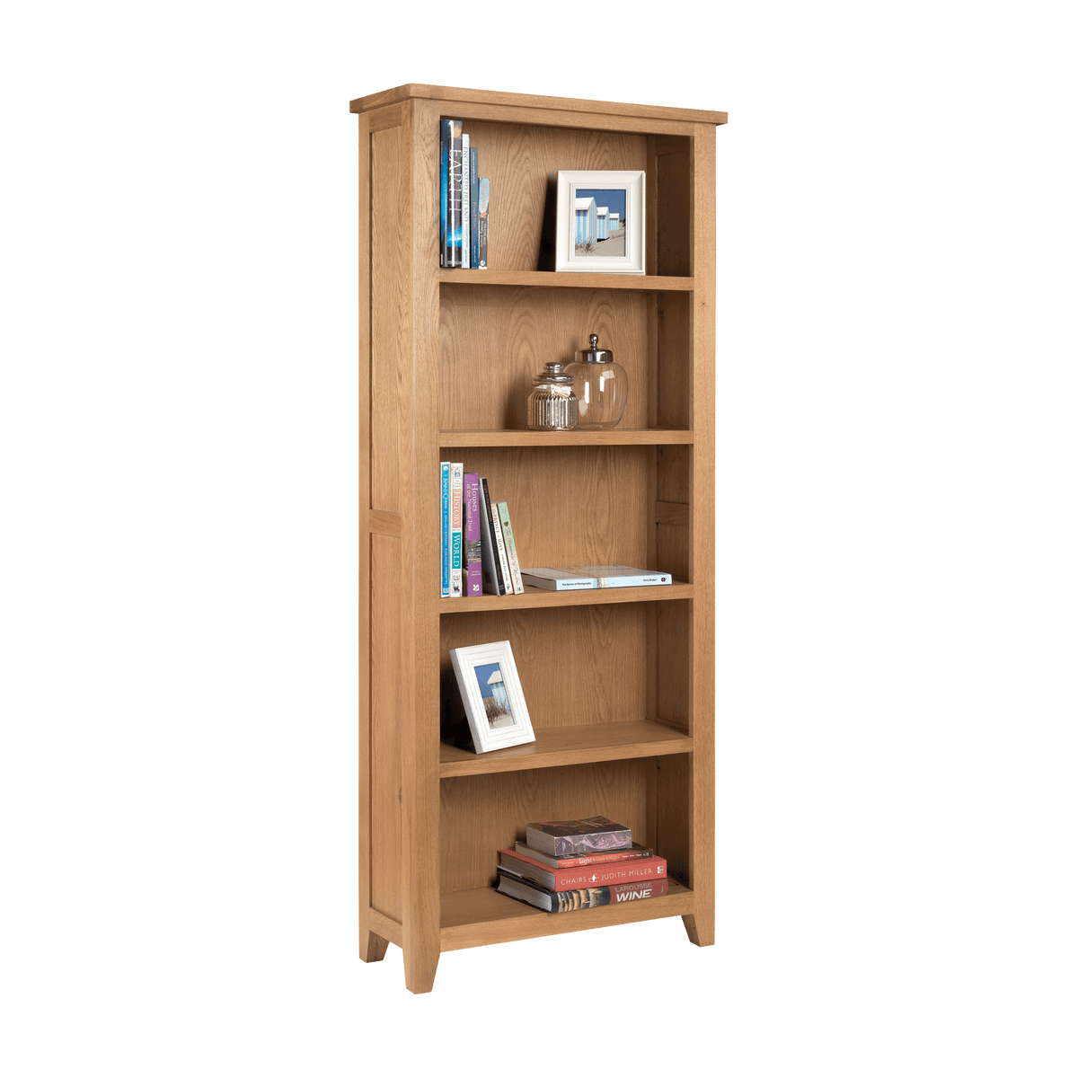 Introducing our elegant Josie tall bookcase, perfect for showcasing your favorite books, decor, and photos. Crafted from high-quality oak, it features four spacious shelves that provide ample storage and display space. With its timeless design and sturdy construction, this bookcase is a stylish addition to any room in your home.
