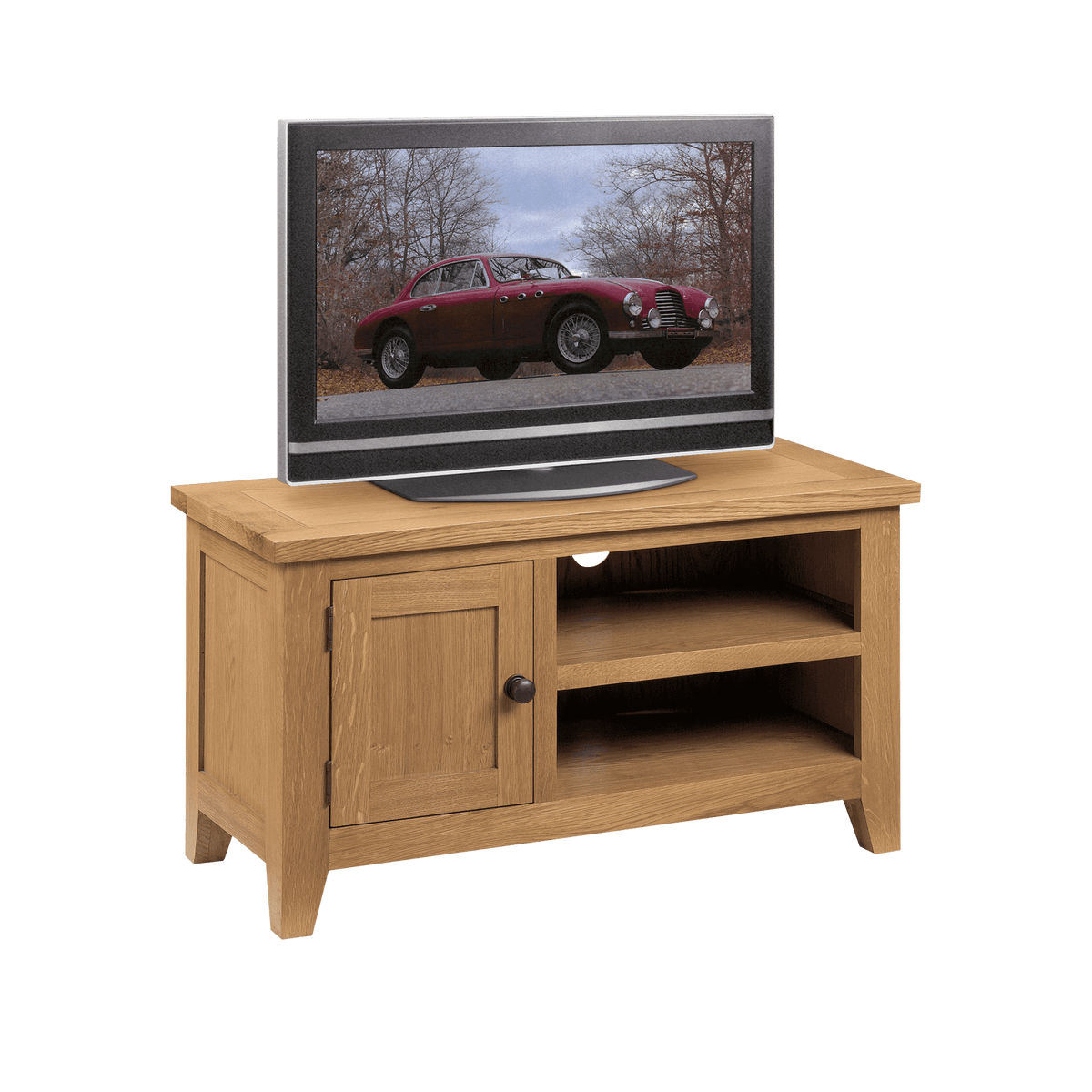 Enhance your living room with this elegant Josie oak TV unit. Featuring a spacious cabinet and open shelves, it provides ample storage for your media devices and accessories. The sturdy build and timeless design make it a perfect addition to any home decor.