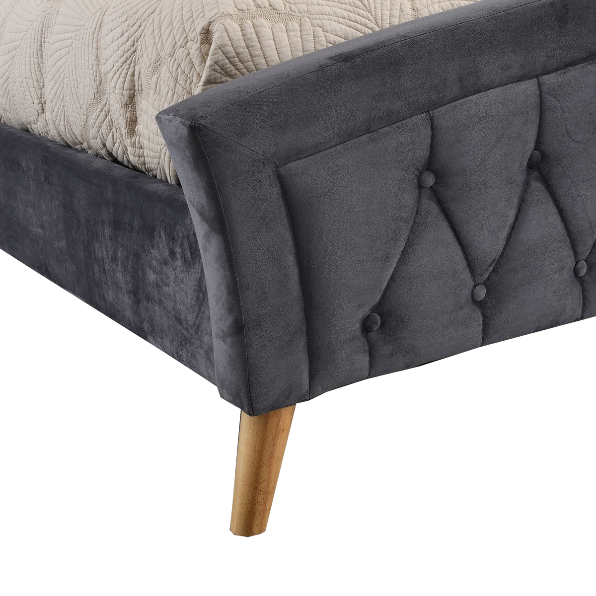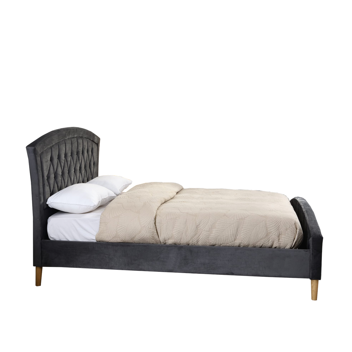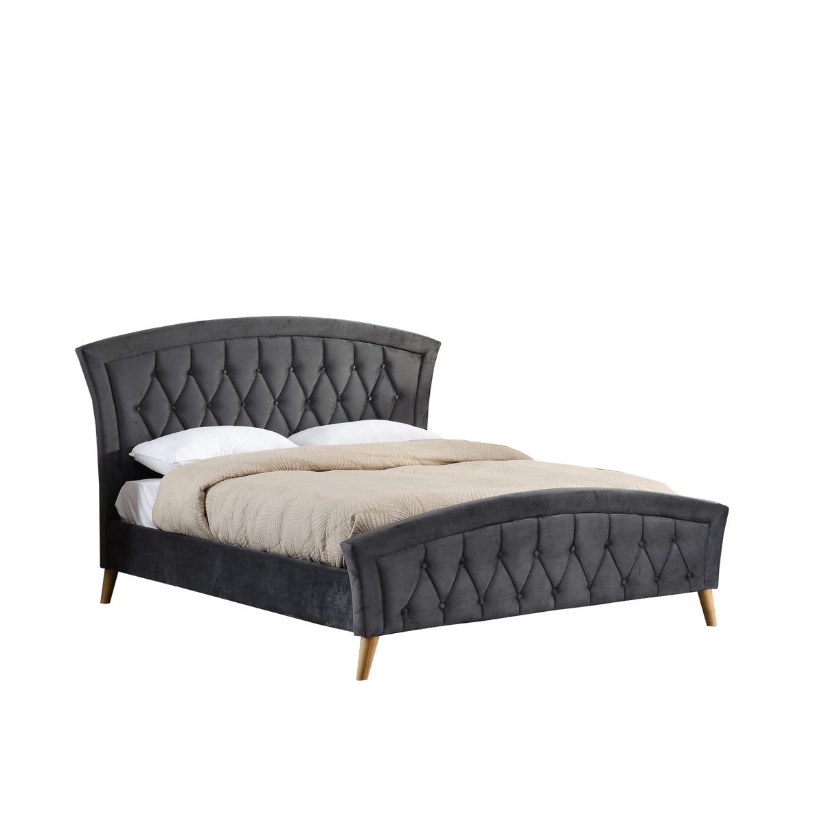 Introducing our elegant Kayla bed frame, designed to bring a touch of luxury to your bedroom. The soft, tufted headboard and footboard, crafted with premium velvet fabric, offer both comfort and style. Supported by sturdy wooden legs, this bed frame combines durability with modern aesthetics. Perfect for creating a cosy and sophisticated sleeping environment.