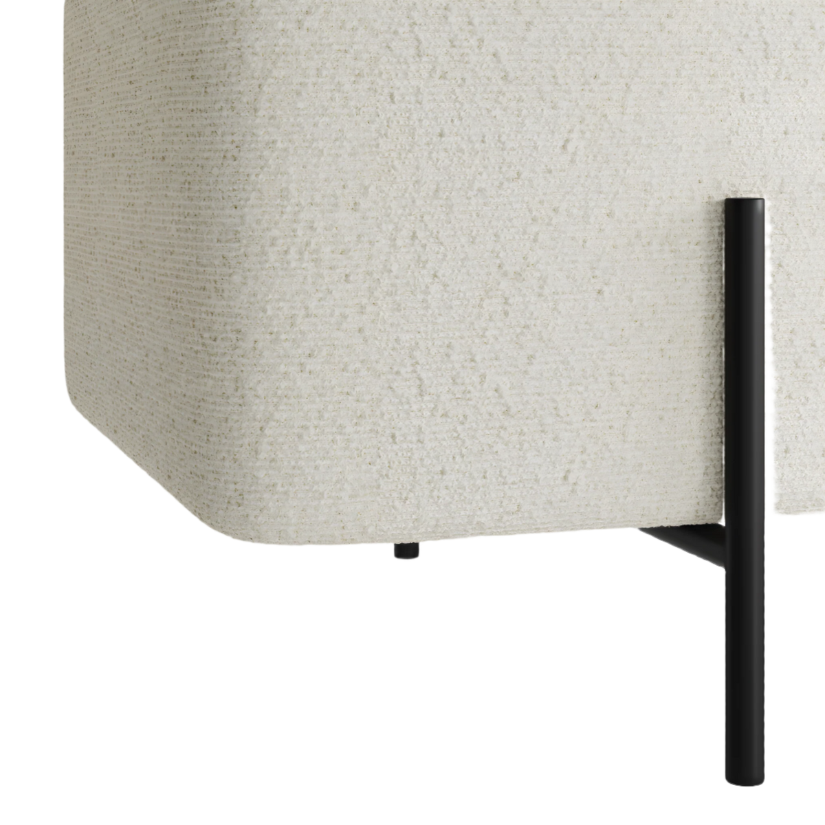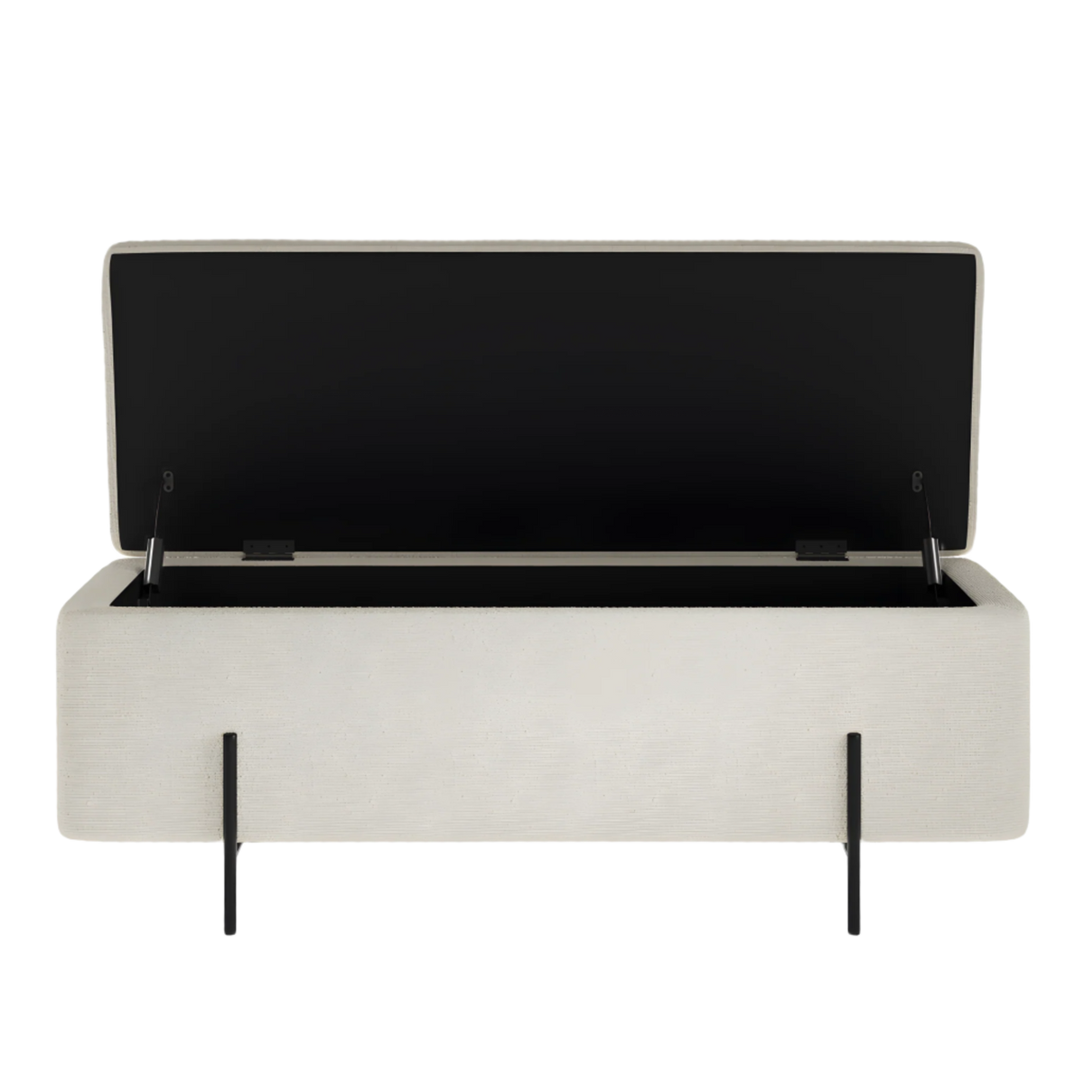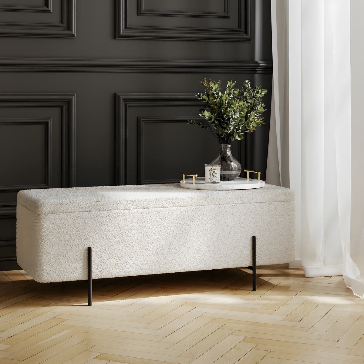 Cushioned bench seat, textured boucle, combined with matt black legs, creating a simple, stylish statement that is Lola. Not only is Lola, classic and timeless, it offers a useful storage solution so you can store your things in style.