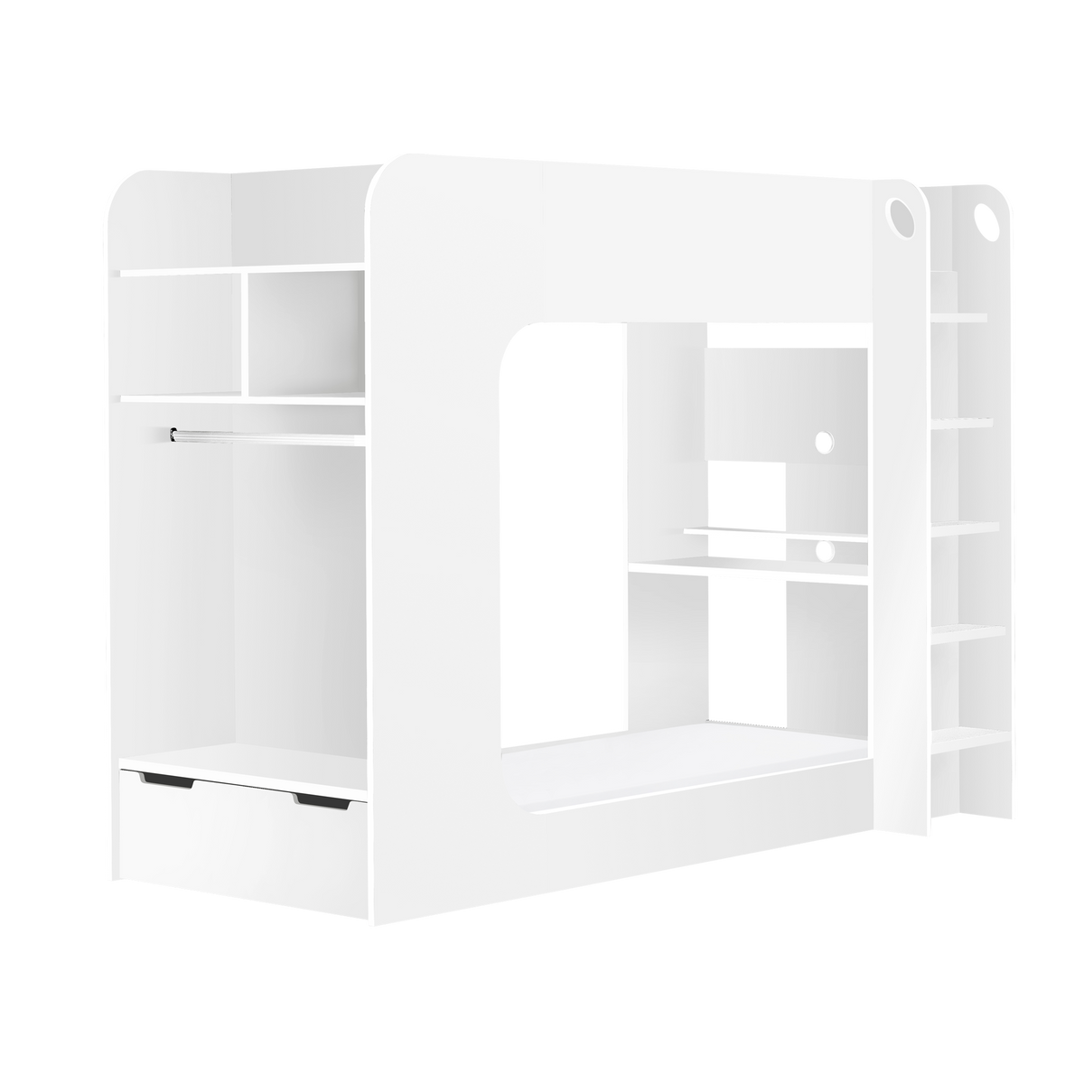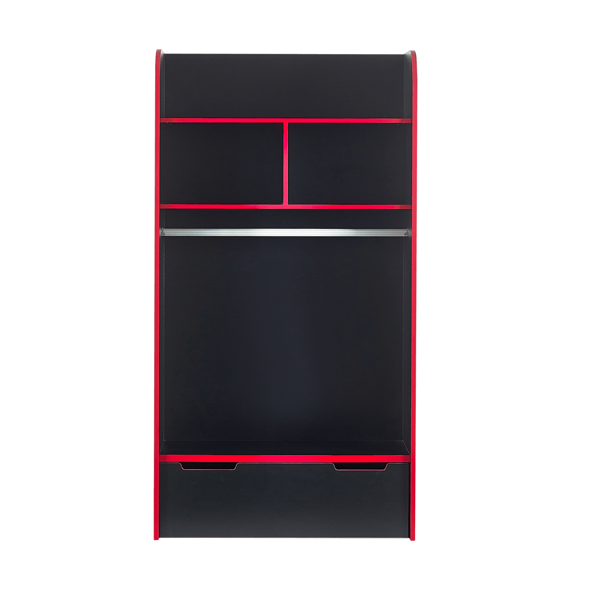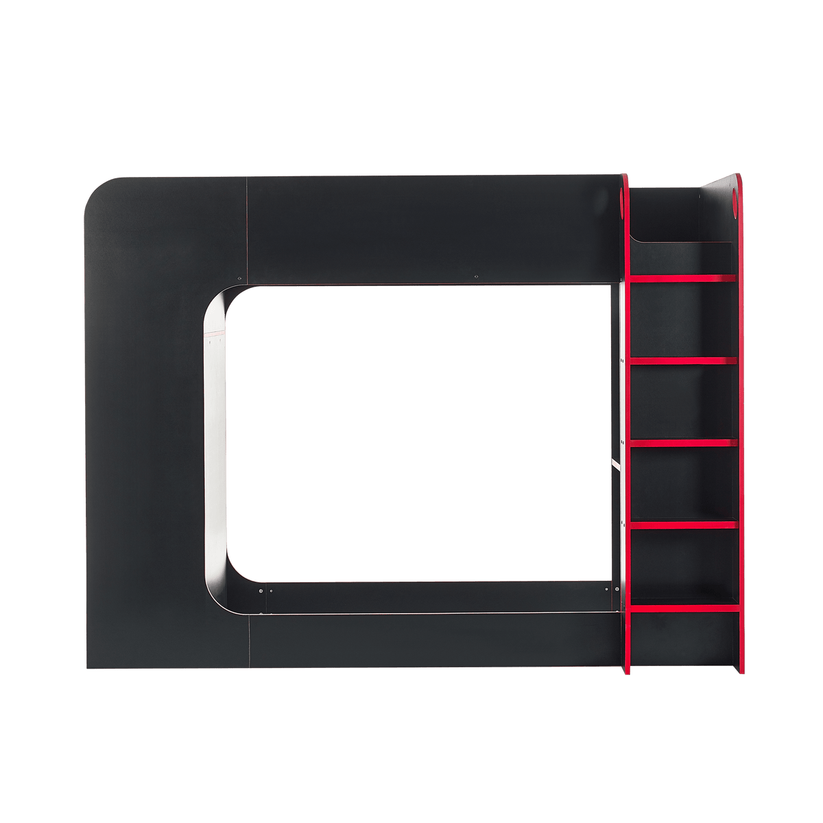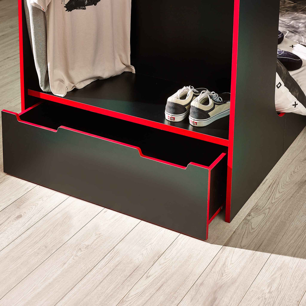 The Lombard Gaming Bunk provides the perfect set up for teenage gamers, with a large underbed space and desk for a monitor. Featuring a hanging rail and multiple storage areas, this modern gaming bed provides the ideal space to sleep, play and stream. Available in Black/Red or All White.