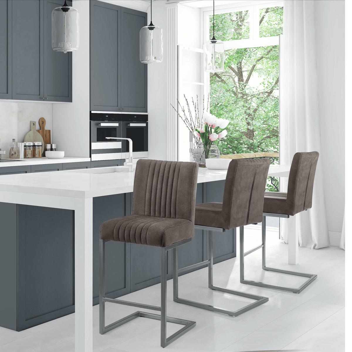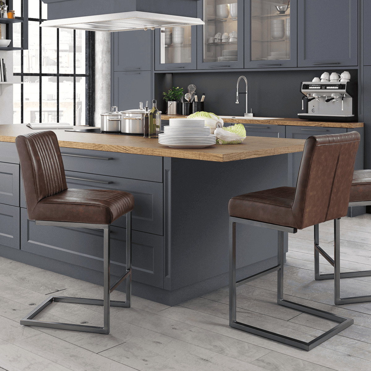 Upgrade your home with our chic Madison bar stool, featuring a premium faux leather seat in brown or charcoal grey. The sleek, industrial metal frame adds durability and a modern touch, while the ergonomically designed seat ensures comfort. Perfect for both contemporary and classic spaces, this bar stool is a stylish addition to any setting.