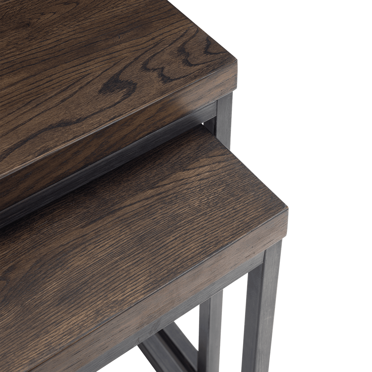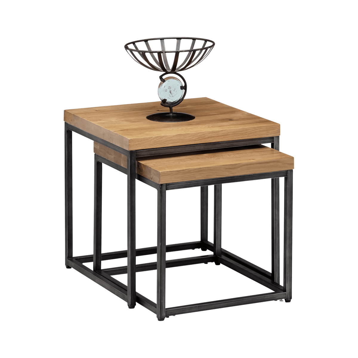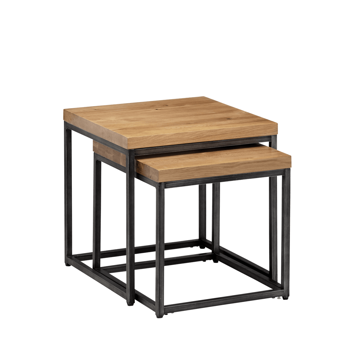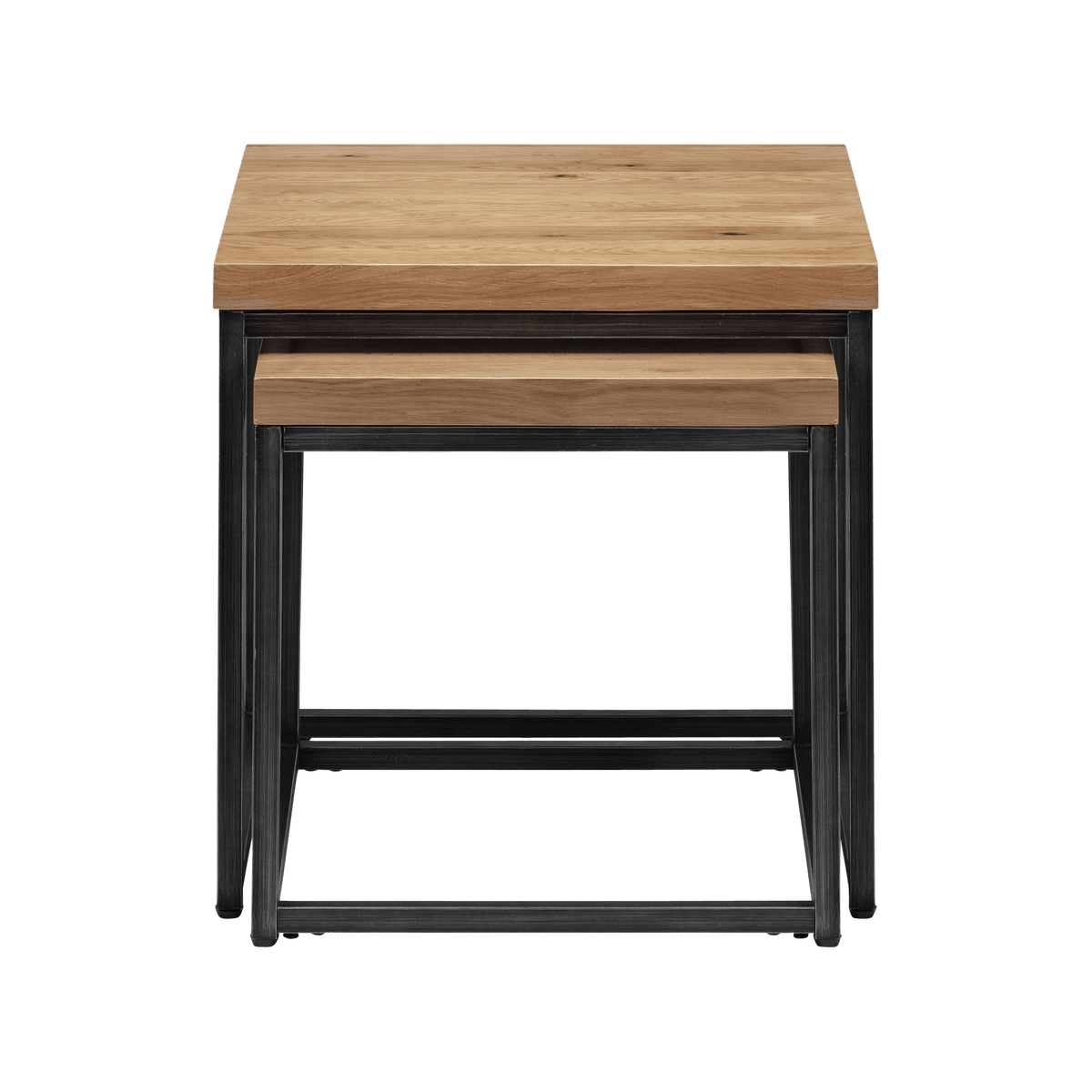 Enhance your living space with our stylish Madison nesting lamp tables, available in elegant Natural and Dark Oak finishes. These versatile tables feature a sleek, modern design with durable wood tops and sturdy metal frames, perfect for any contemporary home. Ideal for small spaces, they provide practical surface area while nesting together for compact storage.