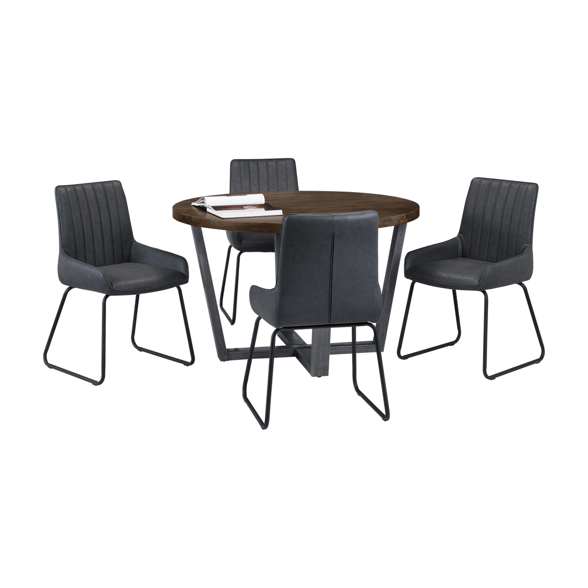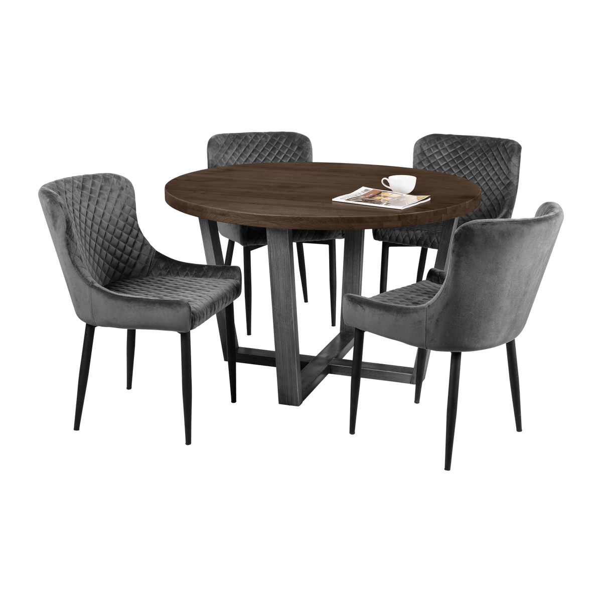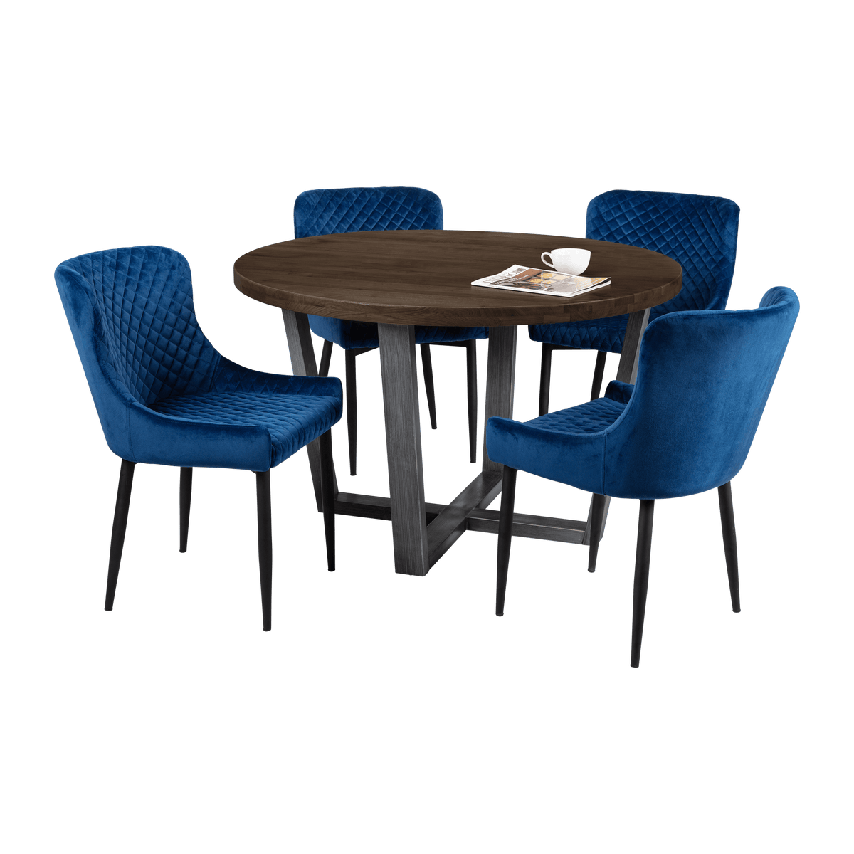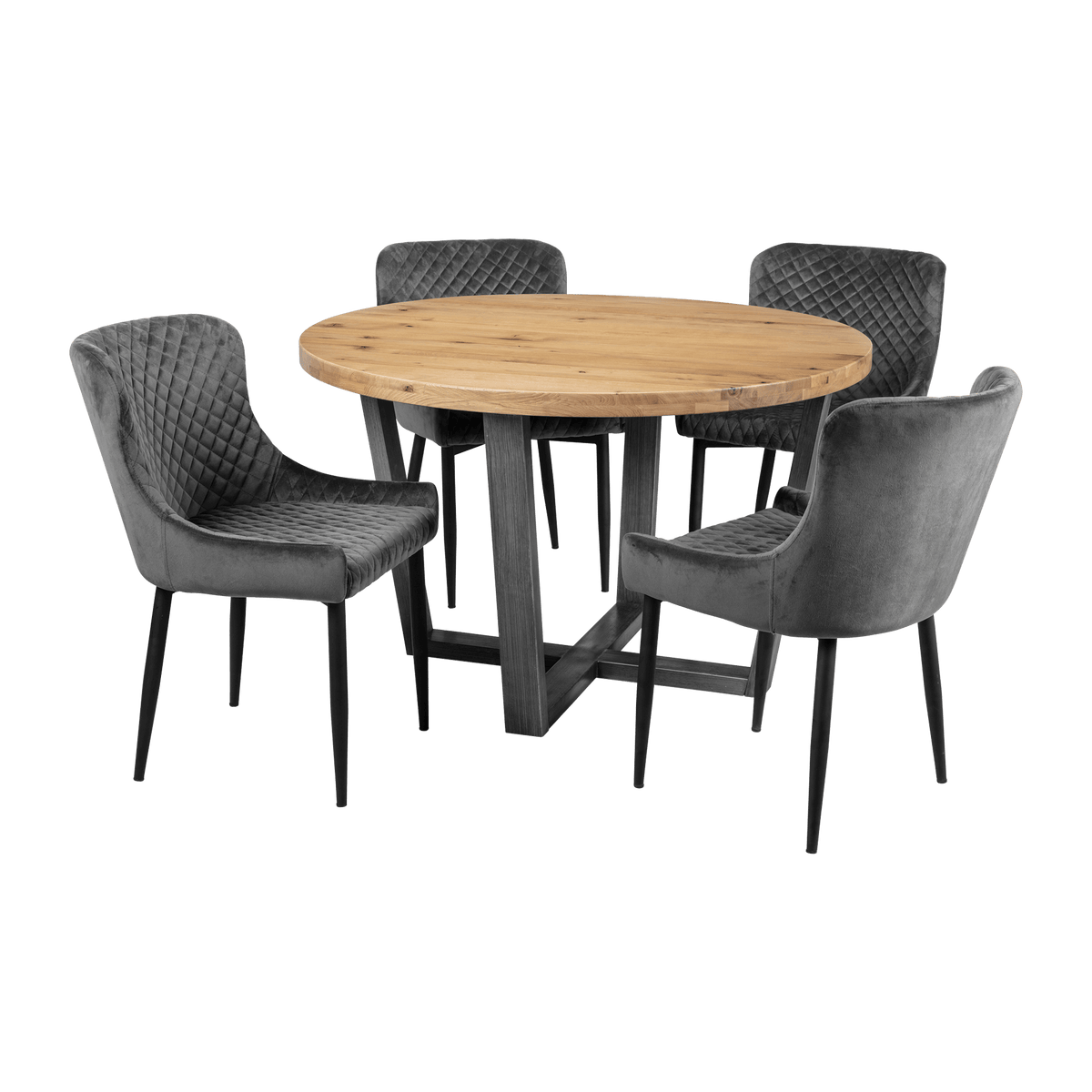 This elegant Madison round dining table is available in two stunning finishes: Natural and Dark Oak. Featuring a sleek metal base with a contemporary design, it offers both style and stability. Perfect for intimate gatherings or family meals, this table will elevate any dining space.