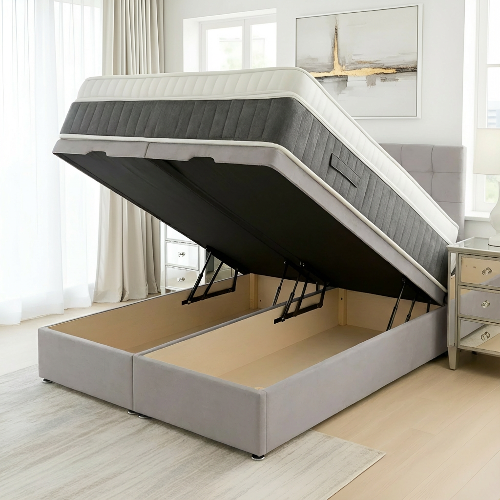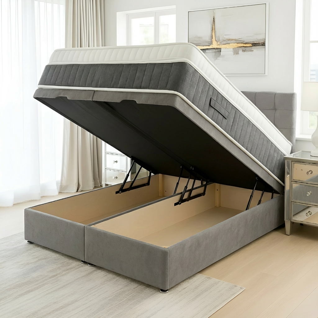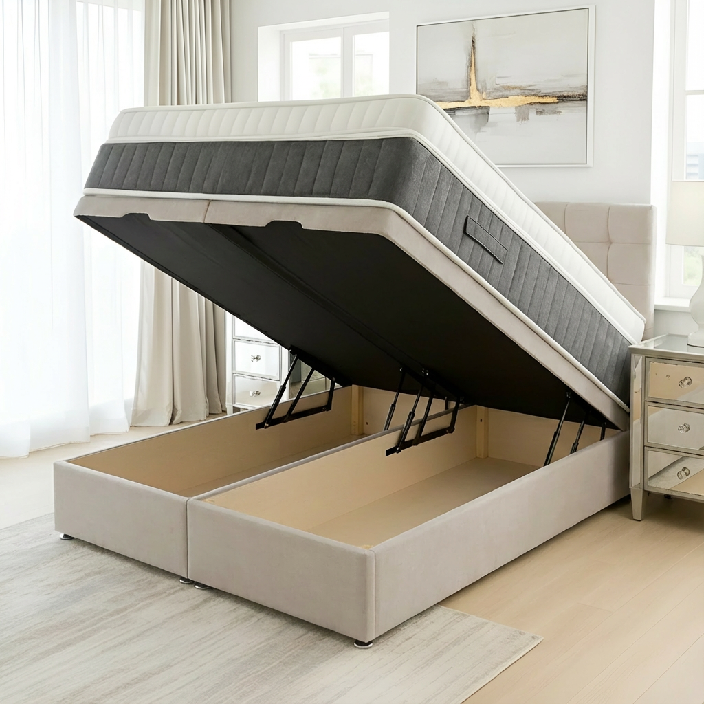The Madrid Ottoman Base offers a sophisticated divan foundation designed with integrated storage solutions. Crafted to maximize bedroom space, it provides a sturdy and supportive base for your mattress while featuring convenient compartments to keep linens, clothing, or other essentials neatly organized and easily accessible. Ideal for those seeking both functionality and style, this base enhances comfort and optimizes storage without compromising on quality or design.