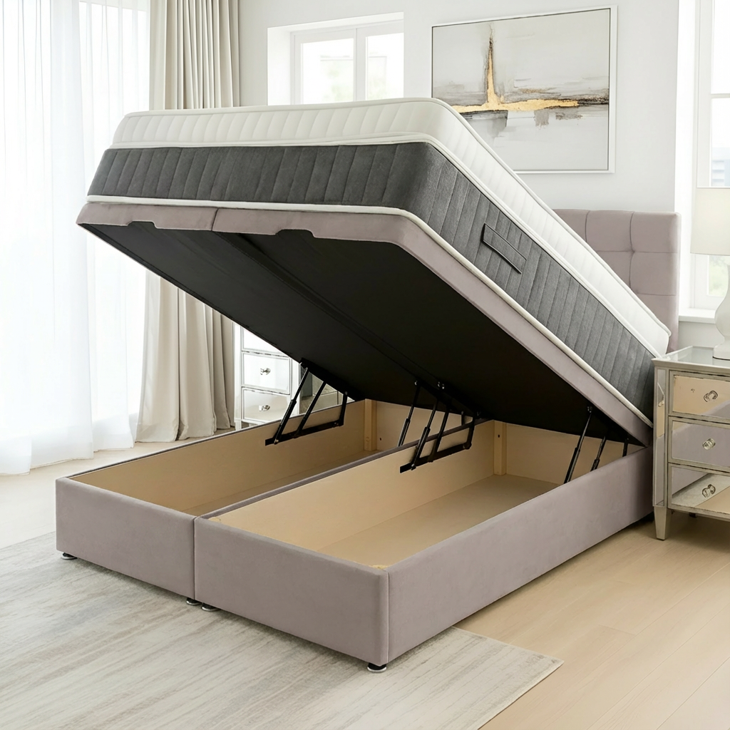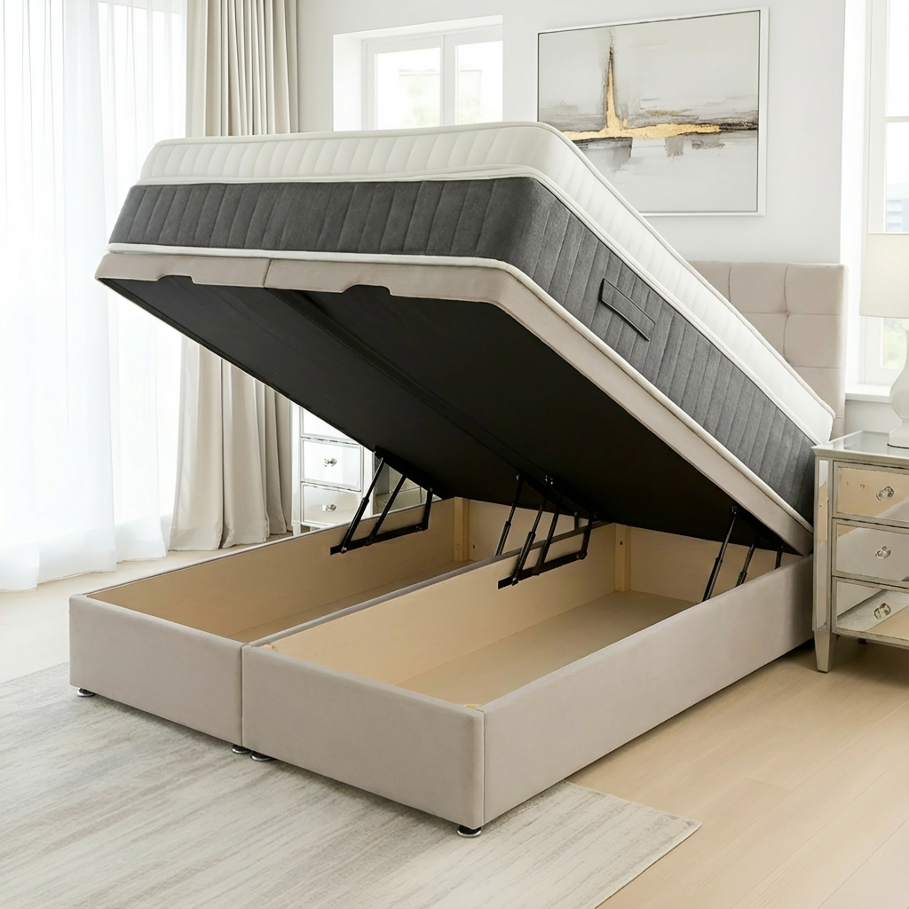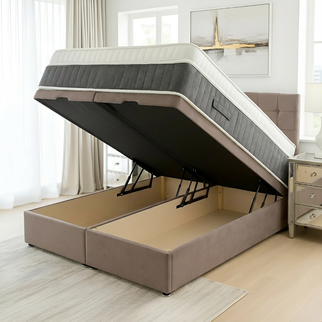 The Madrid Ottoman Base offers a sophisticated divan foundation designed with integrated storage solutions. Crafted to maximize bedroom space, it provides a sturdy and supportive base for your mattress while featuring convenient compartments to keep linens, clothing, or other essentials neatly organized and easily accessible. Ideal for those seeking both functionality and style, this base enhances comfort and optimizes storage without compromising on quality or design.