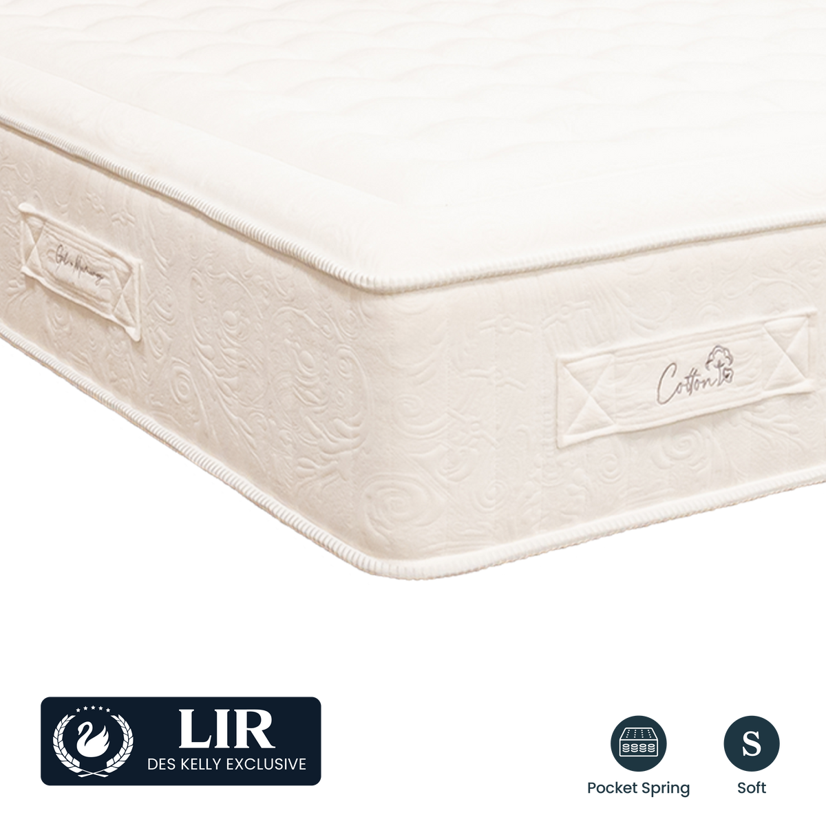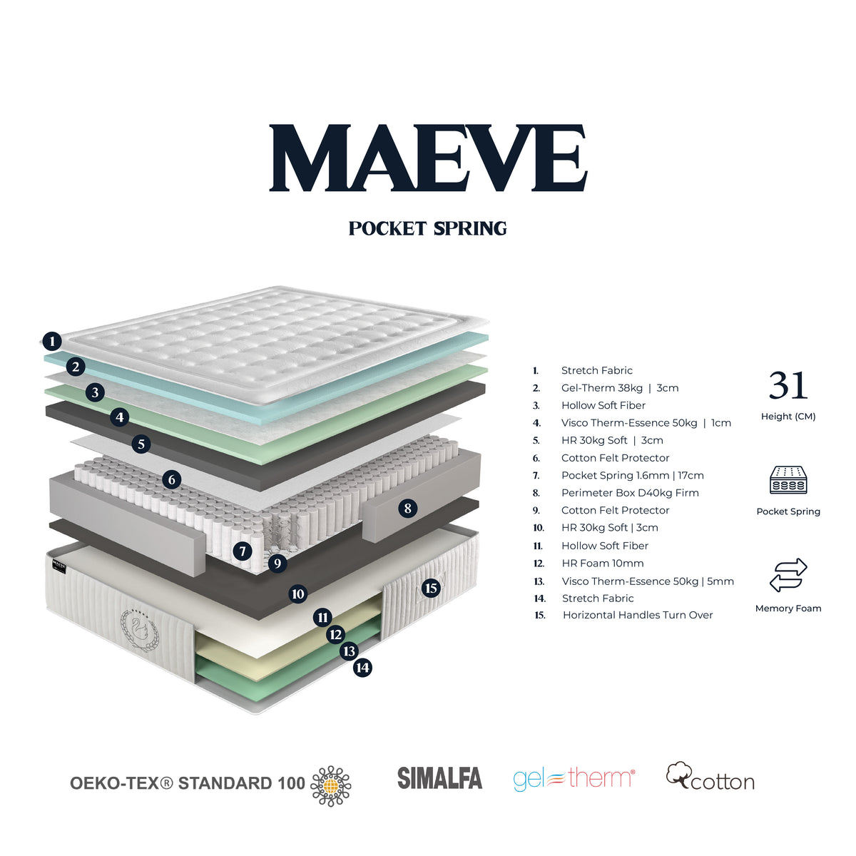 Indulge in a good night sleep with the Maeve Mattress from our Lir Collection, featuring a premium pocket spring system, this mattress ensures individual support to contour perfectly to your body’s natural shape, reducing pressure points. Being double-sided and the inclusion of a felt protector enhance durability, so you can enjoy its luxurious comfort for years to come.